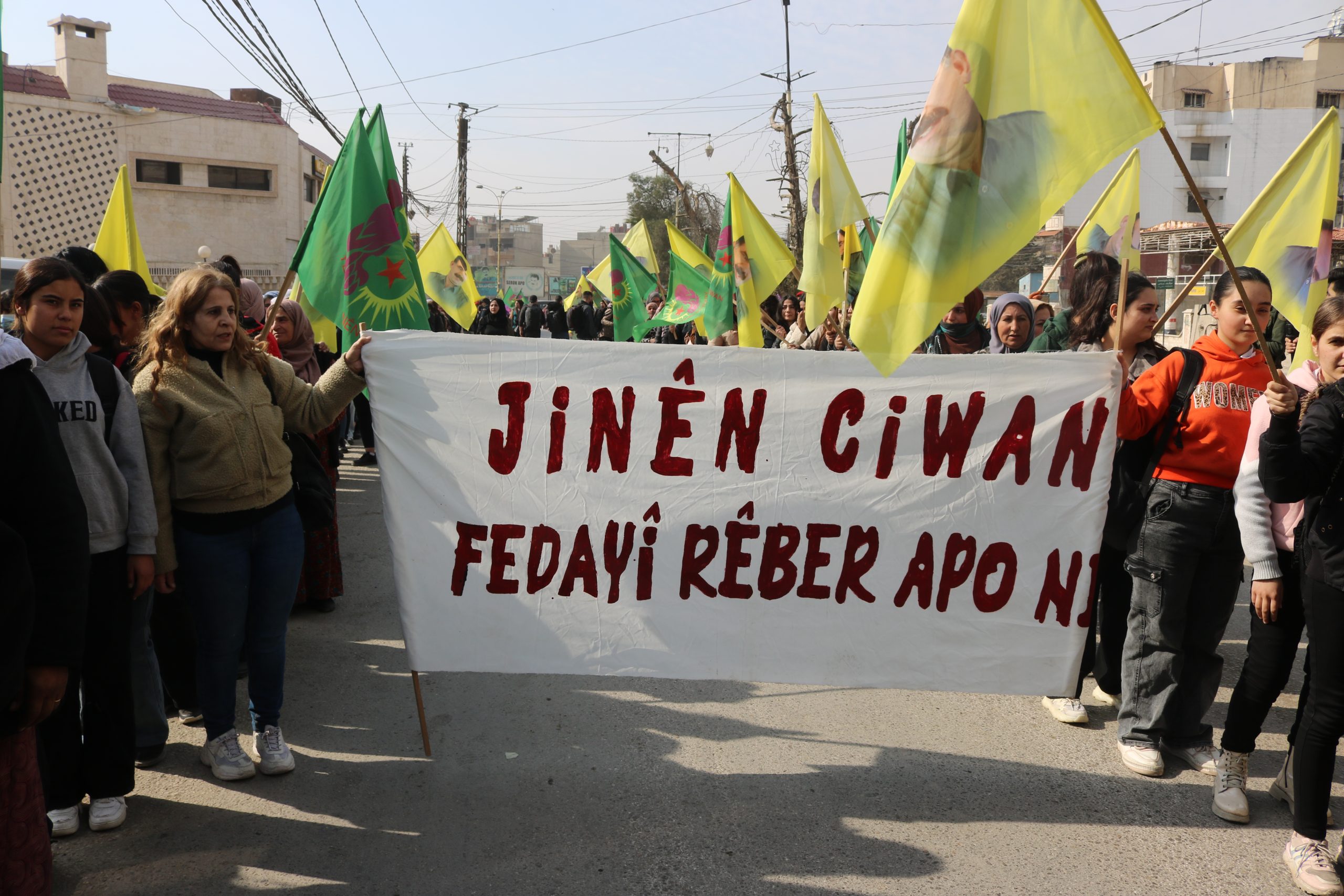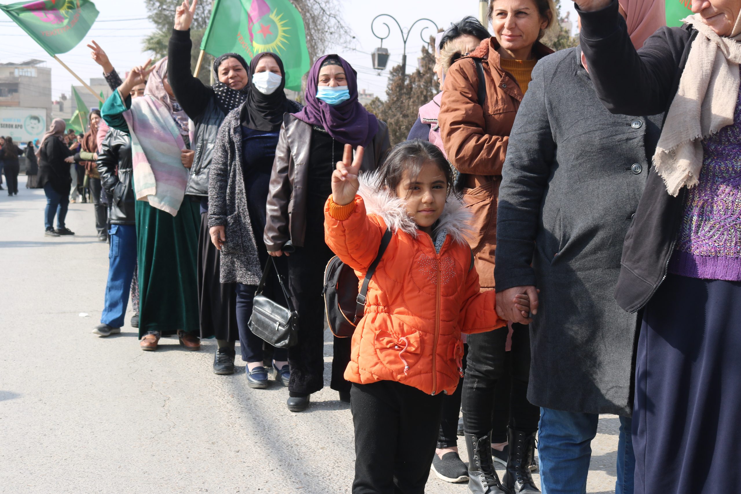 QAMIŞLO- Ji bo şermezarkirina Komploya Navneteweyî ya ku li djiî Rêber APO hate kirin, Yekitiya Jinên Ciwan li bajarê Qamişlo meşeke girseyî li dar xist.