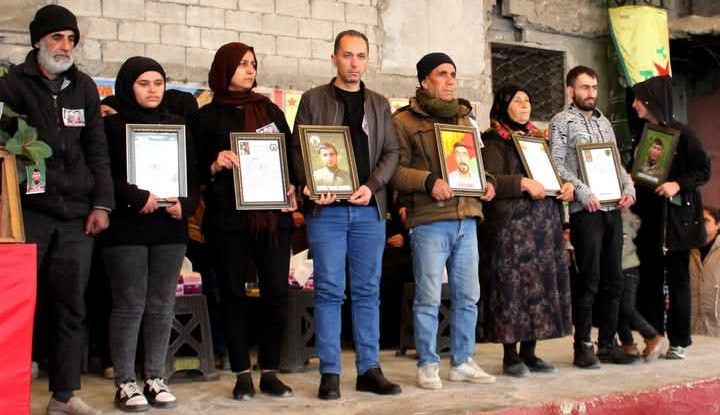 HALEP- Meclisa Malbatên Şehîdan a Helebê ji bo bîranîna şervanên Hêzên Rizgariya Efrînê (HRE) Telal Belbûl (Wehîd Sefer) û Canfeda Efrîn (Mihemed Elî) û şervanê QSD’ê Piling Efrîn (Îsam Îsa) yên dawiya 2024’an li Şehbayê di berxwedana li hemberî êrişên çeteyên dewleta Tirk a dagirker de şehîd bûne û şehîdê sivîl Kawa Şêxê, merasîmek li dar xist.