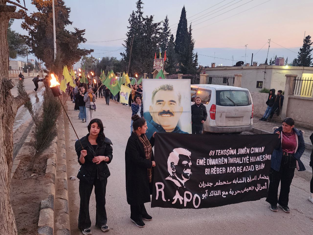 DIRBESIYÊ-  Di çarçoveya çalakiyên şermezarkirina Komploya Navneteweyî ya li dijî Rêber APO de, Yekîtiya Jinên Ciwan duh êvarê li bajarê Dirbesiyê meşek meşaleyî li dar xist.