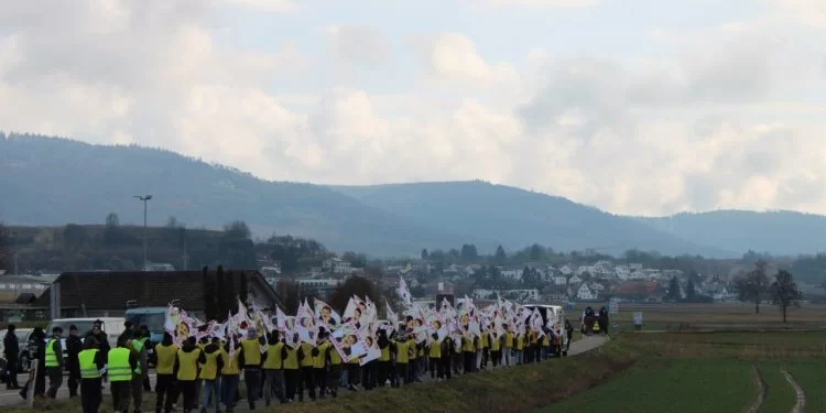Ciwanên ku duh di bin baran û zextê polîsan de qonaxa Stuttgart-Böbligen bi serkeftî bi dawî kirin, sibehê saet di 08:00 de li ber gara trenê ya Offenburgê li hev civiyan û rêya 19 km ber bi navenda bajarê Offenburgê ve dest pê kirin.