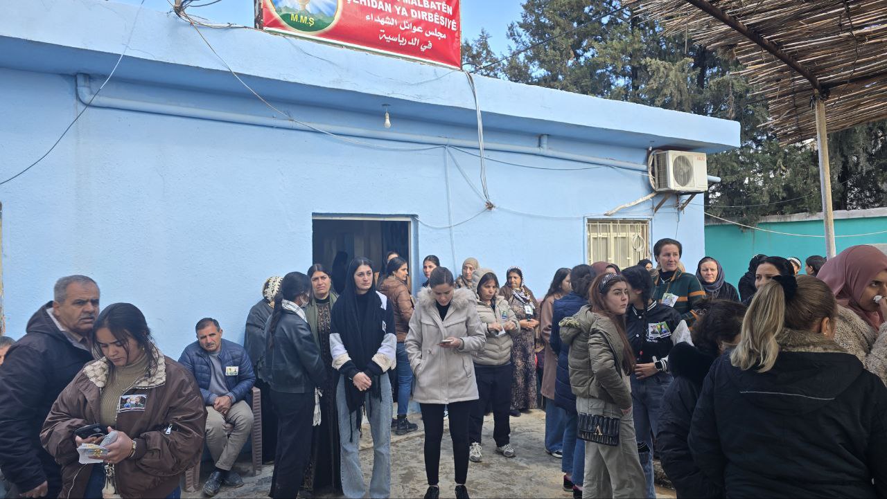 Şêniyên Dirbêsiyê û gelê welatparêz ji bo oxirina her dû şehîd li ber avahiya Meclîsa Malbatên Şehîdan kom dibe.