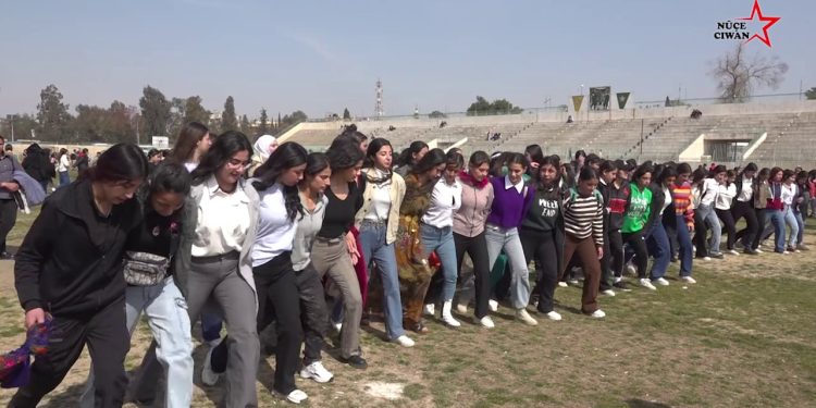 QAMIŞLO – Bi boneya boneya 8`ê Adarê Roja Jinan a Cîhanê, Yekitiya Xwendekarên Welatparêz li Stadyuma 12`ê Adarê ya li bajarê Qamişloyê, şahiyek li dar xist. Bi sedan xwendekar û mamoste beşdarî şahiyê bûn.
