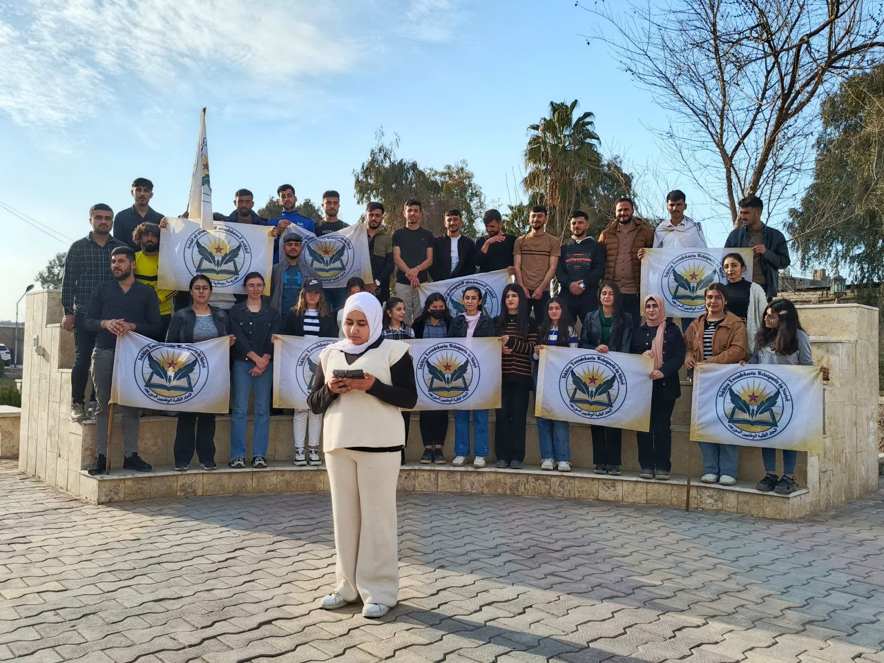REQA- Endamên Yekîtiya Xwendekarên Welatparêz ên Bakur û Rojhilatê Sûriyê li Reqa der barê qetilkirina xwendekara ciwan a bi navê Şînda Adil Kişo ya ji Taxa Xerbî ya Qamişlo ku xwendekara pola yekem a tibê li Laziqiyê bû û qetlîamên hêzên HTŞ’ê yên li dijî gel bi daxuyaniyeke şermazar kir.