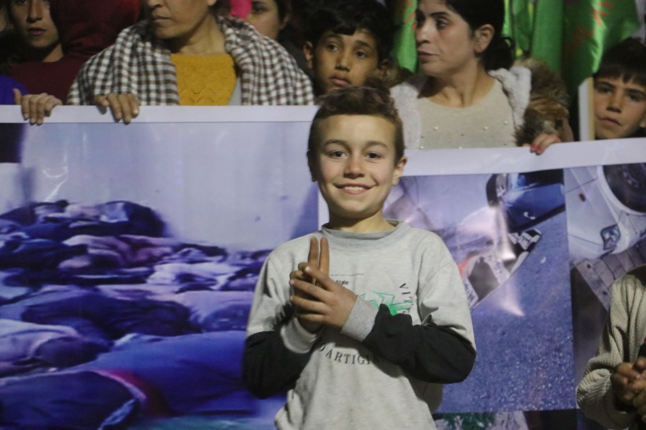 Di dawiyê de dirûşmeyên “Ji kûştina Elewiyan re na”, “Ji mezhebperestiyê re na” û ‘Ji tundiya li ser jinê re na’ hatin berzkirin.