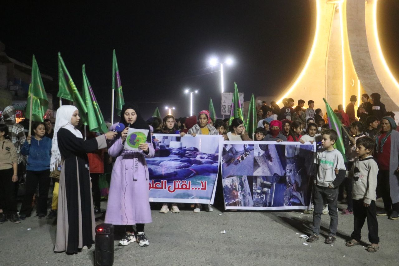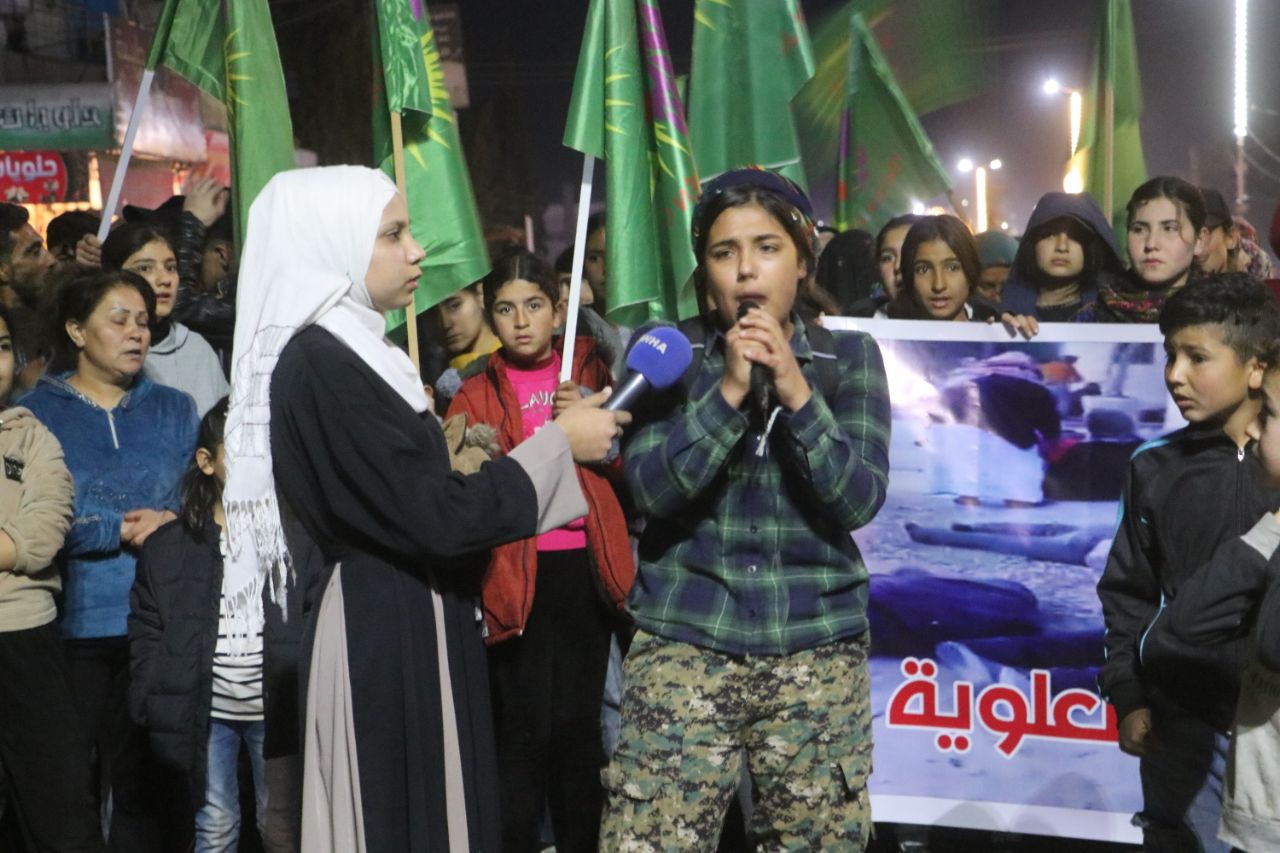 TEBQA – Yekîtiya Jinên Ciwan ên Tebqayê û Efrînê ji bo şermezarkirina qetilkirina gelê Elewî li heremên Latkiyê û Tartûsê ji aliye hêzên girêdayê HTŞ ve çalakiyekî protesto li darxistin.
