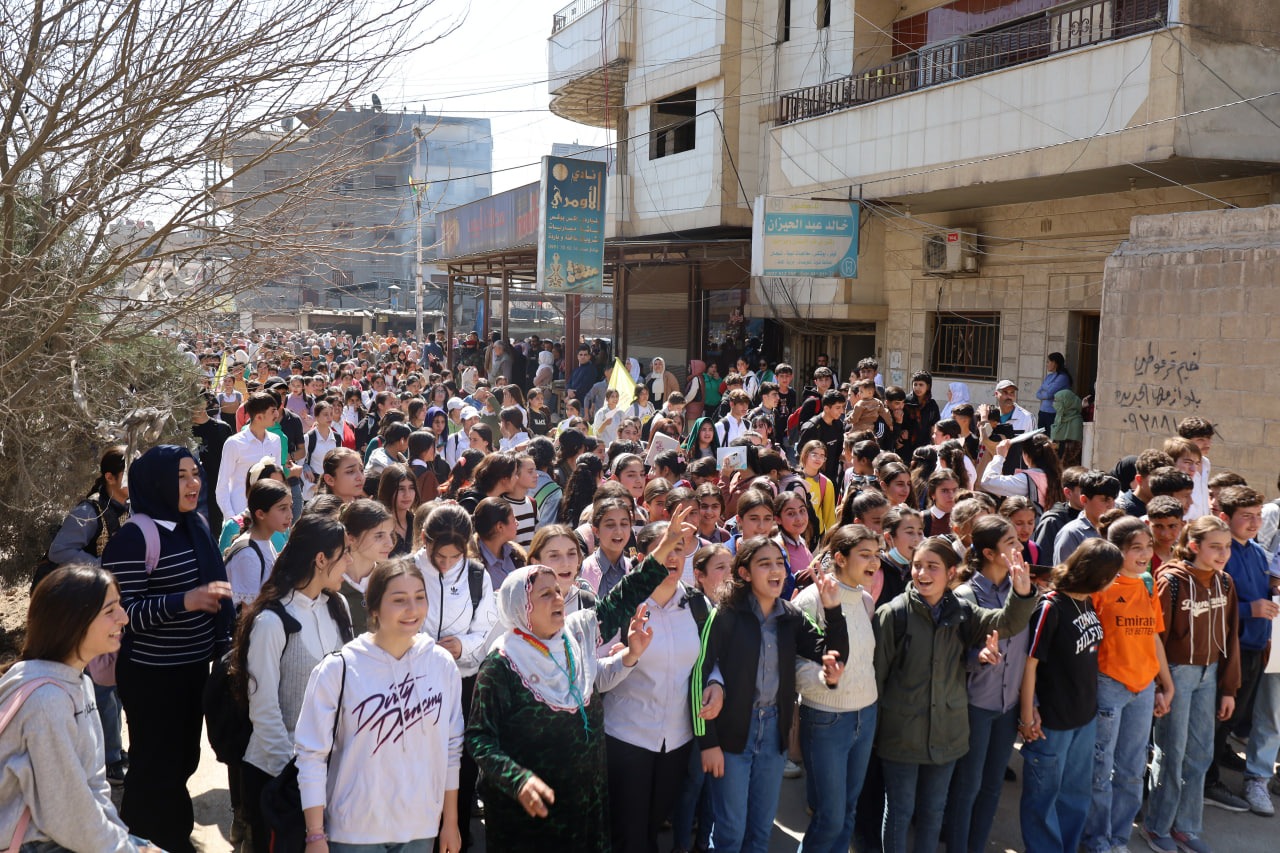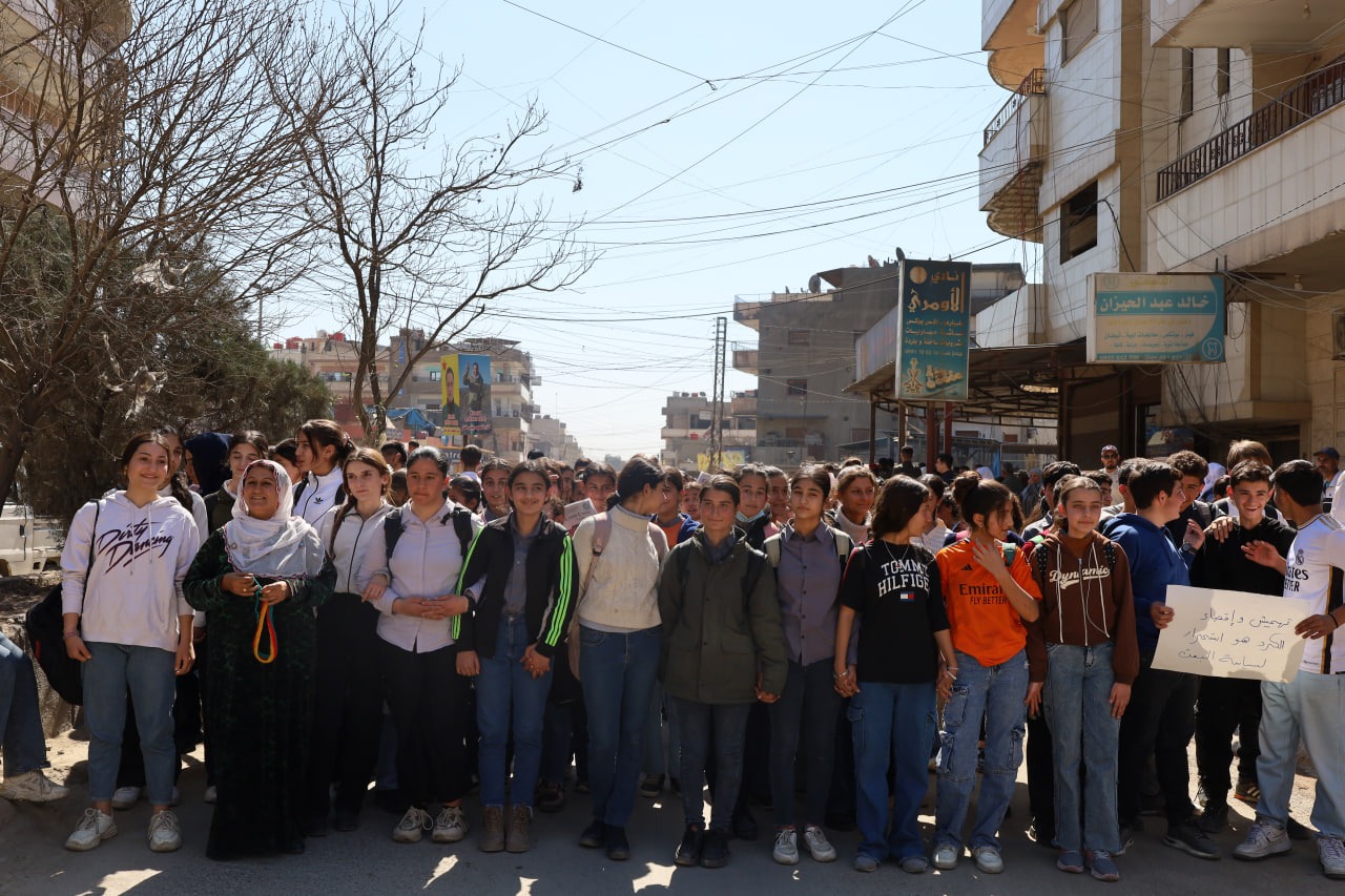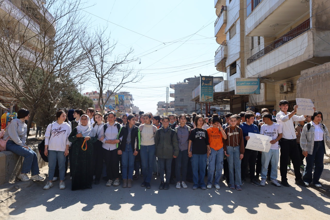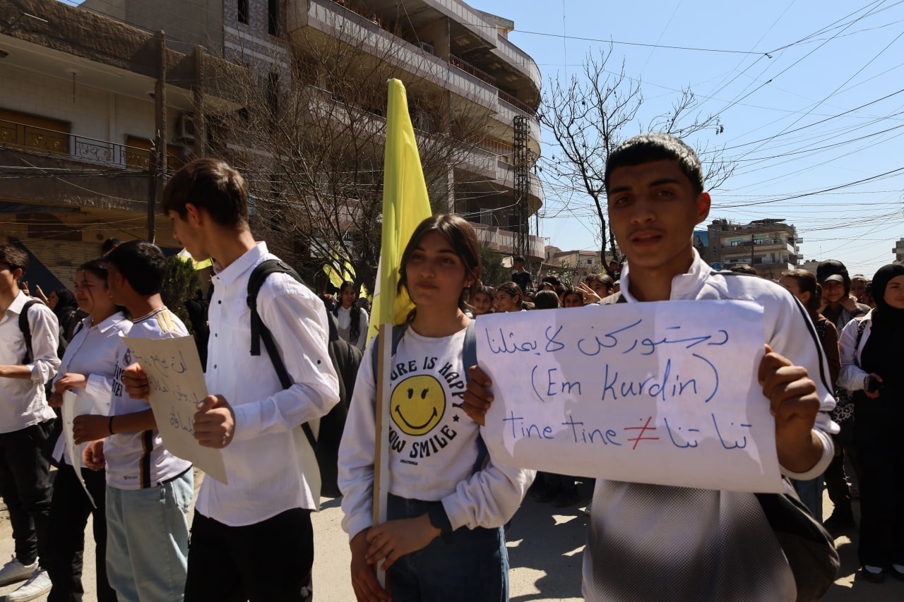 Ciwanên ku beşdarî meşê bûn axivîn û qala hedefa vê çalakiyê kirin. Xwendekarê bi navê Rêvan, diyar kir ku destûra ku li Şamê hat amadekirin mafê kurdan naparêze û ne layîkê tekoşîna 14 salan a şoreşa Rojavayê Kurdistanê ye. Rojda jî diyar kir ku ew wê destûrê qebûl nakin û ku wê her mafê xwe yê ku bi kurdî biaxivin û kurdî bixwînin biparêzin. Fehed Osman, ji dibistana Şehîd Kemal jî destûra nû şermezar kir.