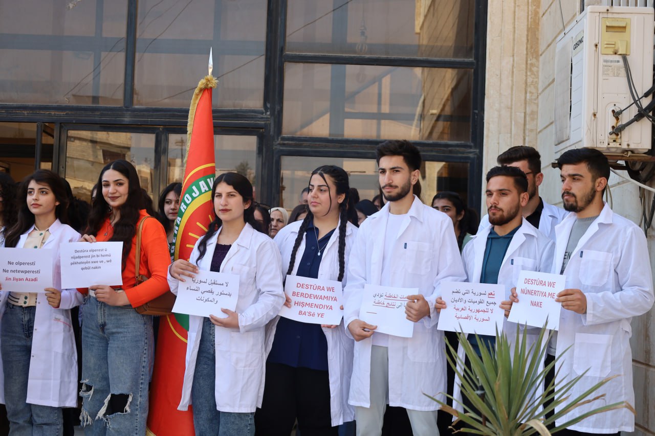 QAMIŞLO- Meclisa Zanîngehên Bakûr û Rojhilatê Surî li Qamişloyê têkildarî danezana destûrî ya ji aliyê desthilata Şamê ve hatiye ragihandin daxuyaniyek da. Daxuyanî ber avahiya meclisê bi amadebûna endaman ve hat dayîn.
