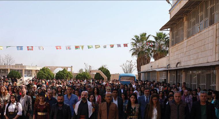 Yekîtiya Xwendekarên Welatparêzên Sûrî û Meclîsa Xwendekaran ya Zanîngeha Rojava bi dirûşmeya "NEWROZA RÊBERTIYA AZAD Û CIVAKA DEMOKRATÎK PÎROZ BE" şahiyek li darxist .