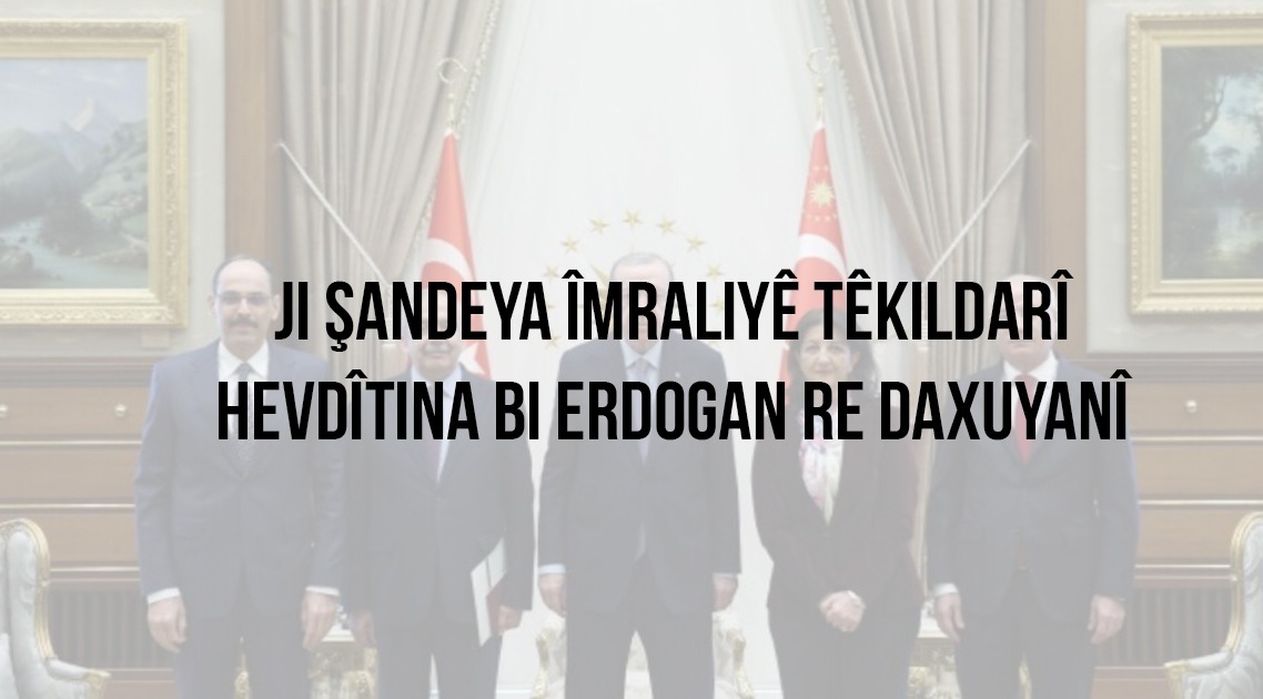 NAVENDA NÛÇEYAN –Şandeya Îmraliyê ya DEM Partiyê piştî hevdîtina bi Erdogan re daxuyanî da û got: “Em ji welatê xwe re eşkere dikin ku em bi şanaz in ku em ji duh bêtir bi hêvî ne.”