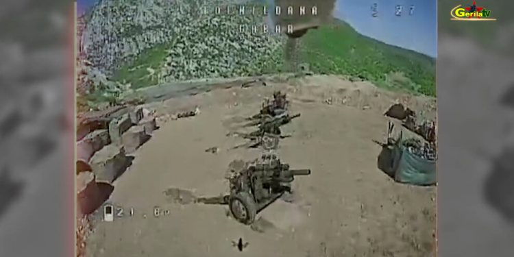 BEHDÎNAN- Gerîla TV dîmenê îmhakirina obusekê weşand ku li Qada Berxwedanê ya Sergelê ya li Herêma Şehîd Delîl a Rojavayê Zapê bombe li tunel û çeperan dibarand.