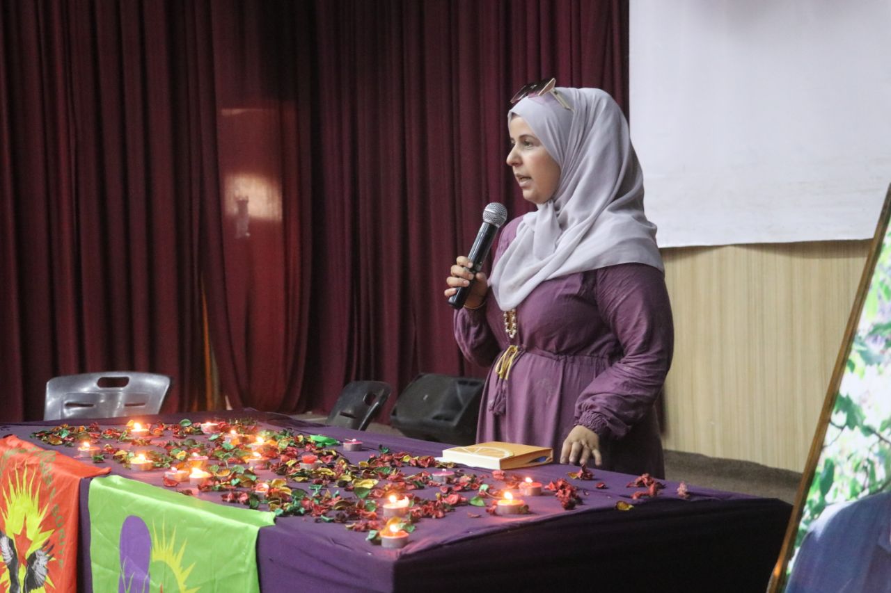 Di çalakiya ku bi deqîqeyek rêzgirtinê dest pê kir de, sînevîzyonên li ser şehîdan hatin nîşandan. Endama Tevgera Jinên Ciwan Aya El-Sagheer axivî û got: “Divê tola şehîdan bê hilanîn.” Ji bo bîranîna şehîdan quncikek ji wêneyên şehîdan hatin çêkirin û mûm hatin pêxistin.