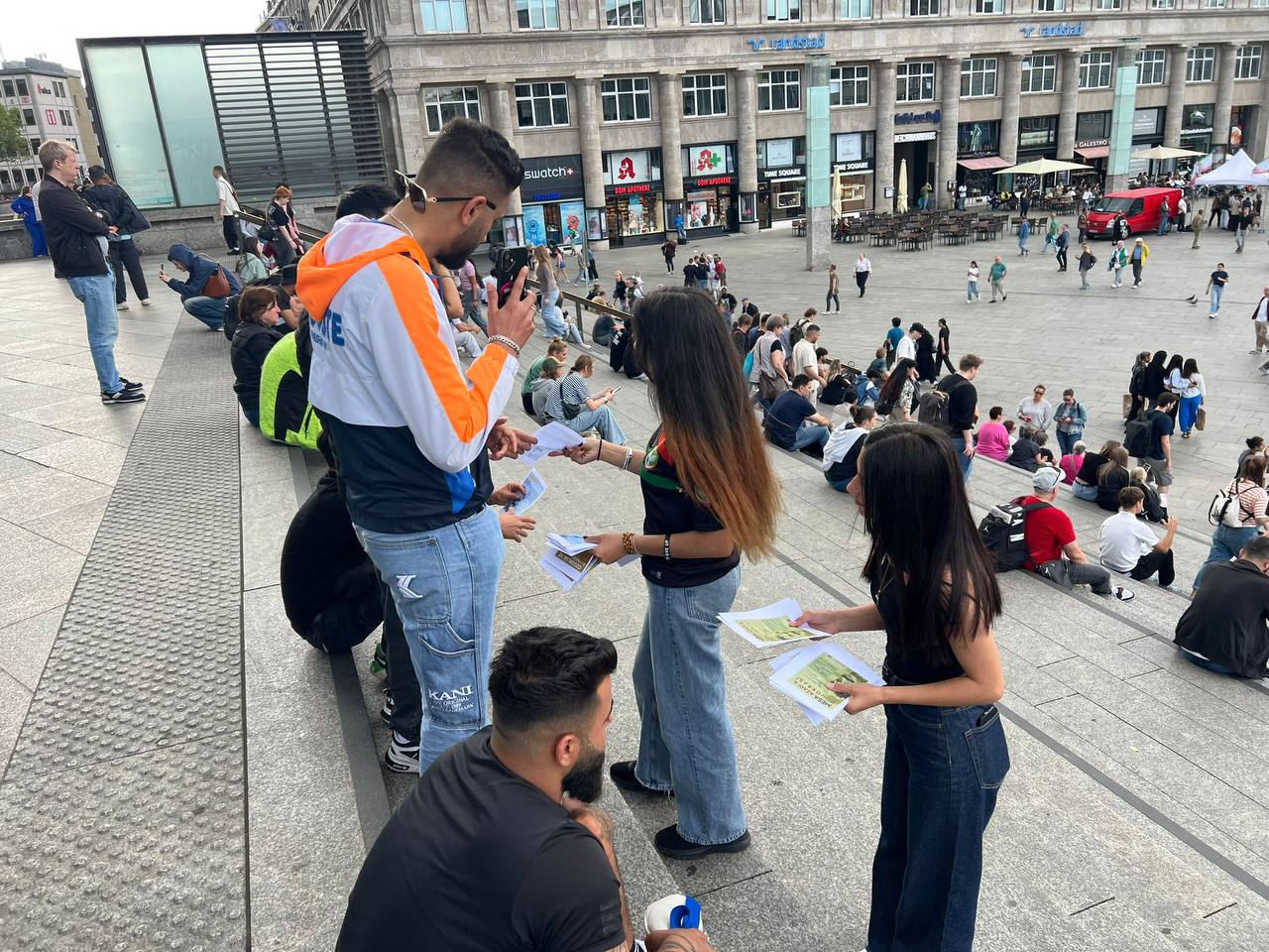 KOLN – Li Koln a Almanya, endamên ciwan ên Tevgera Ciwanên Şoreşger (TCŞ) li navenda bajêr standek agahdariyê li dar xistin û banga çalakiyan kirin. Li ser standê broşûrên li ser Festîvala Şehîd Lecwan Munzur, ku dê di 16’ê Tebaxê de pêk were, û “Meşa Azadî û Demokrasiyê” ku dê ji hêla ciwanên Kurd û enternasyonalîst ve di 9’ê Îlonê de were birêvebirin û azadiya fîzîkî ya Rêber Apo were xwestin, belav kirin.