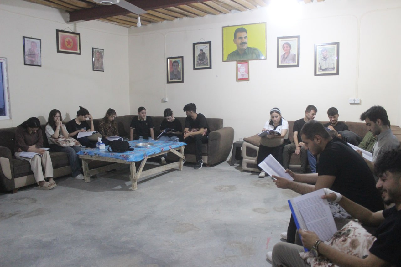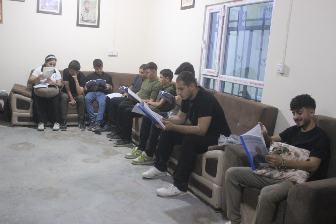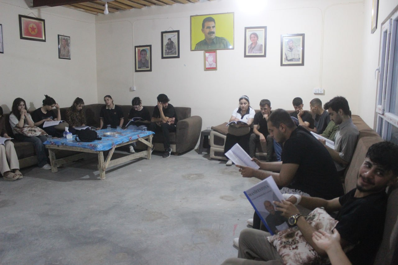 MEXMÛR- Nêzîkî 20 ciwan li Kampa Penaberan a Şehîd Rustem Cûdî ya Mexmûrê ji 18’ê Tebaxê ve Manîfestoya Aştî û Civaka Demokratîk a Rêber Apo dixwînin.