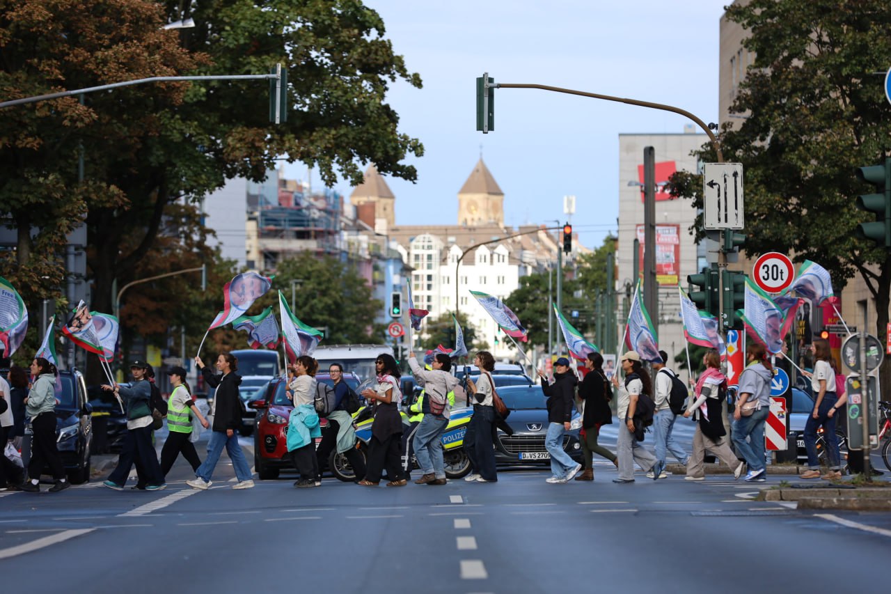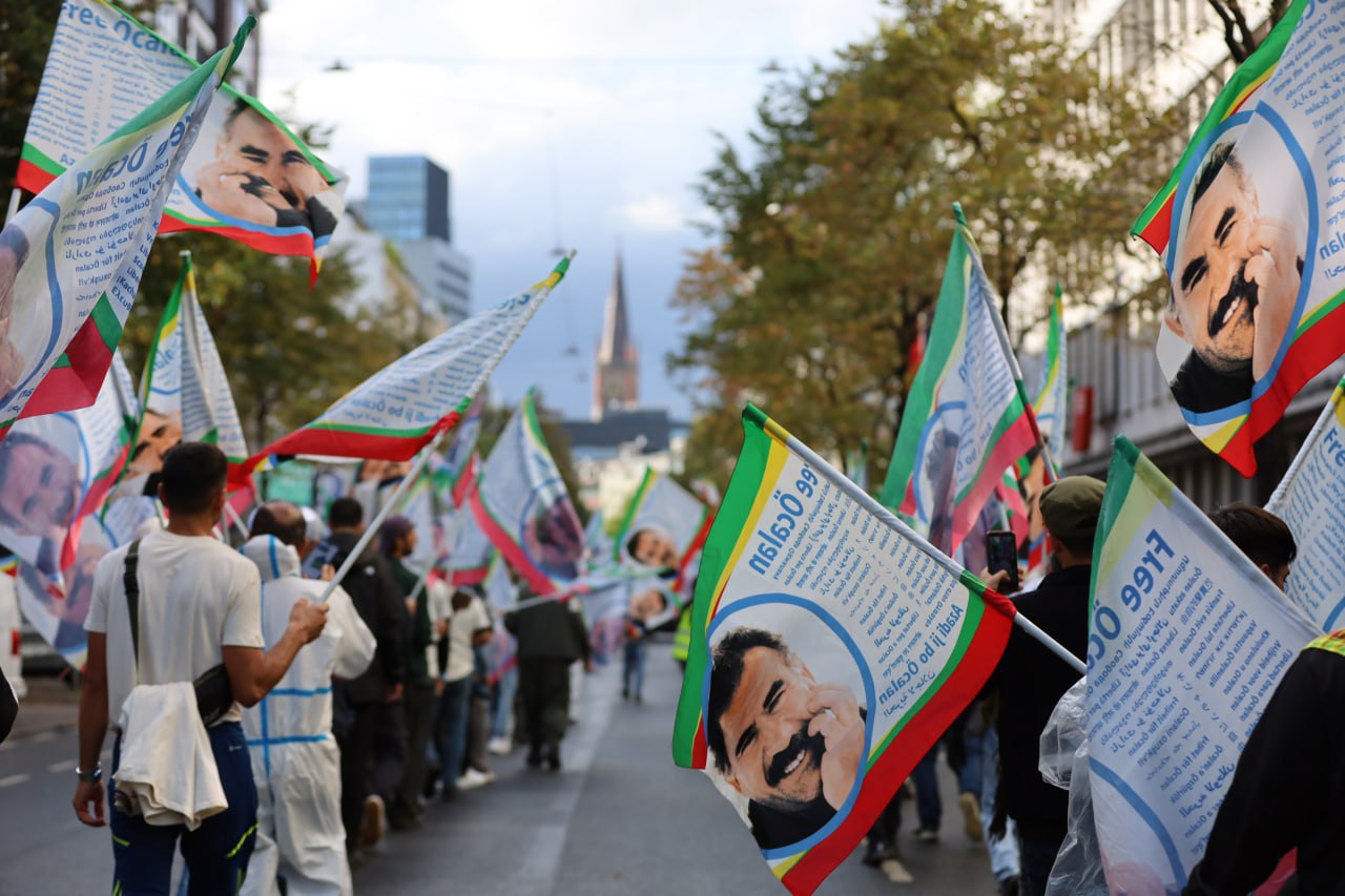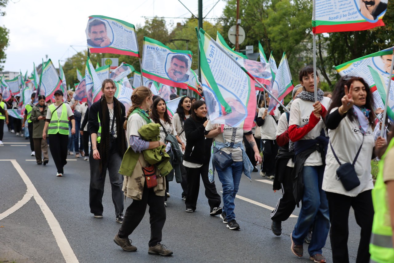 DÜSSELDORF – Beşa Meşa Dirêj a Düsseldorfê bi pêşandaneke pankartê ya balkêş bi dawî bû û piştre panelek li ser “Pêvajo û Enternasyonalîzm” hate lidarxistin. Ber bi dawiya meşê ve, ciwanên Enternasyonalîst pêşandaneke pankartê li dar xistin. Pankartan nivîsandibûn, “Ji Hambî heta Rojava”, Têkoşîna ji bo azadiyê navneteweyî ye”, Azadî ji bo Rêber Apo,” û “Kesê ku ji welatê xwe hez neke nikare wê biparêze.” Bi vê xwepêşandanê mijara navendî ya meşê dubare bû.