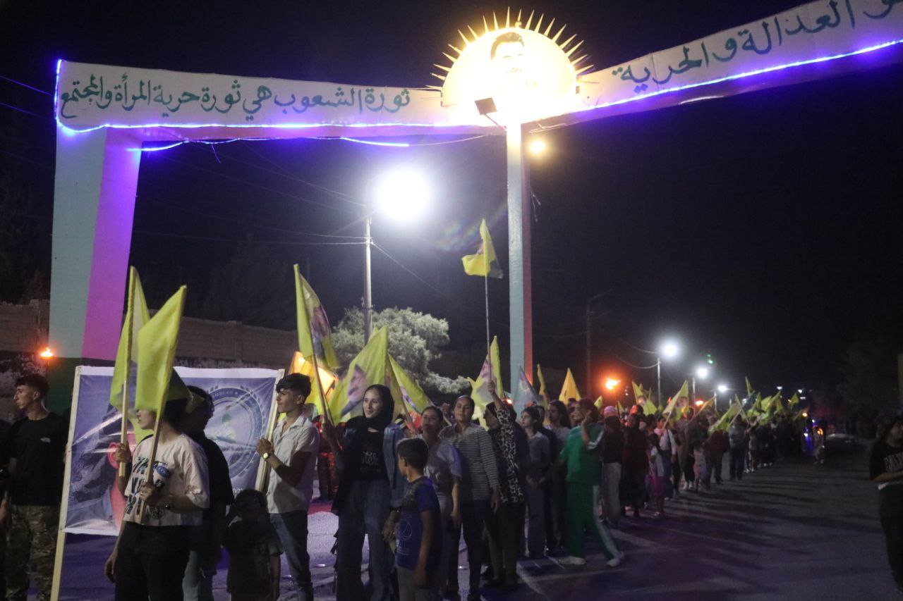 TEBQA – Tevgera Ciwanên Şoreşger û Yekîtiya Jinên Ciwan ên Tebqa û Efrîn meşekî bi dirûşmeya “Azadiya Rêber Apo xeta me yê sor e” li Tebqayê li darxist.