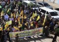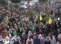 Bi şiyar û sloganên “Bijî berxwedana QSD” û “Em hemû QSD ne” desteka xwe ji hêzên HSD nîşan dan. Her wiha, pankartên bi nivîsên “Em piştgirîya QSD dikin, em hemû QSD ne, QSD rûmetê me ye”, “QSD ewlehiya welatê diparêze” û “Em hemû Dêr Hafar in” hildan.