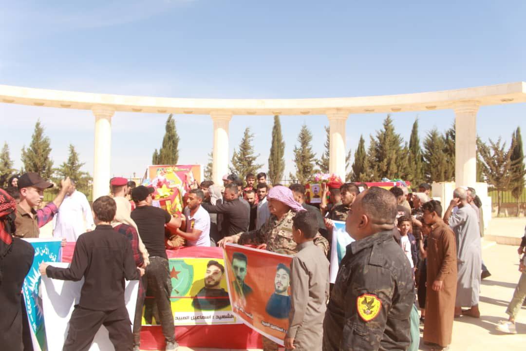 Merasîma bi xwendina wesîqeyên sê şehîdan û radestkirina wan ji malbatên wan re bi dawî bû. Piştre cenazeyan hatin veşartin.