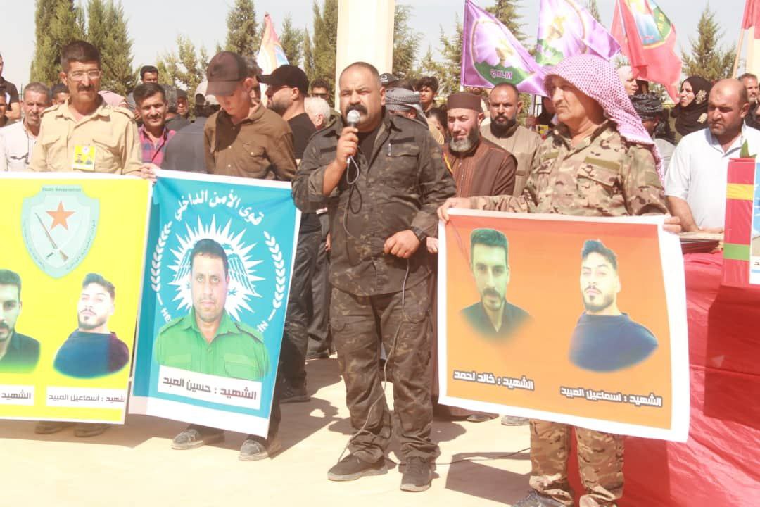 Şêx Huseyîn El-Elî, endamê Konferansa Îslamî ya Demokratîk li Parêzgeha Reqayê, di axaftina xwe de tekez kir: “Îro em li ber merasîma bi heybet a şehîdên xwe radiwestin. Em ji Xwedê dixwazin ku cihekî fireh li bihuştê bide wan û bihuşta herî bilind bide wan.”
