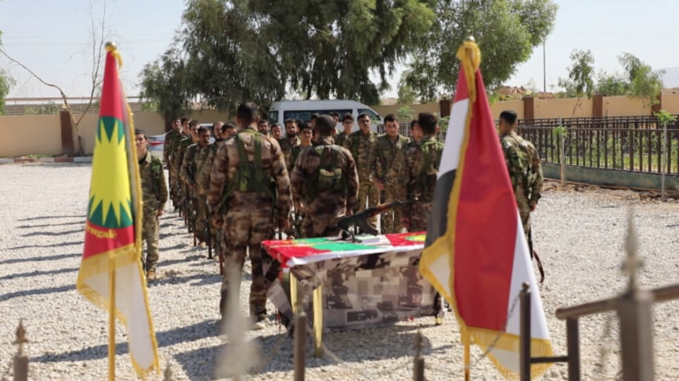 NAVENDA NÛÇEYAN – Şervanan li Akademiyên Derweşê Evdî di dewreya Şehîd Zagros Çekdar de perwerdeya şervanê nû dîtin. Piştî perwerdeya bingehîn ya mehekê bi merasîmekî leşkerî perwerde bi dawî kirin û soza xwe ya parastina xaka Êzîdxane carekî din dubare kirin.