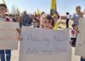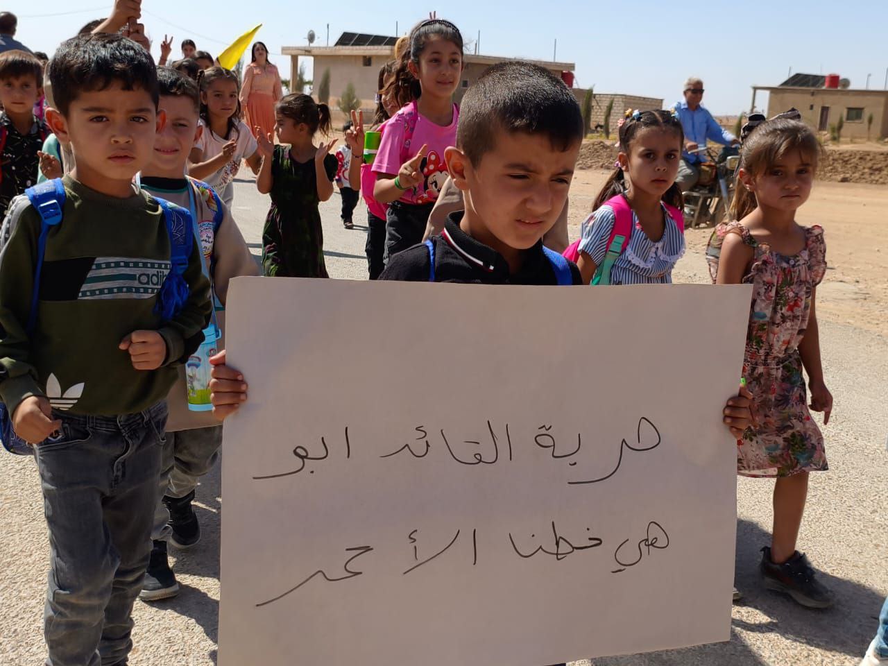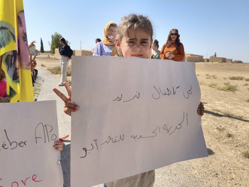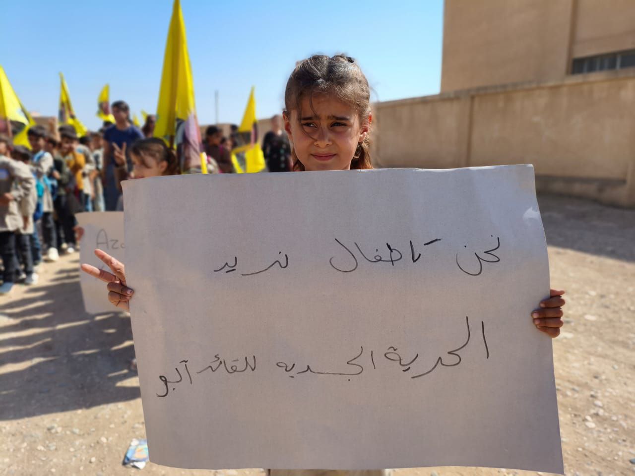 Zarokan alên Rêber Apo hildan û pankartên bi dirûşmeya “Azadiya Rêber Apo xeta me ya sor e”. Zarokan diyar kirin ku ew jî şagirtên Rêber Apo ne û azadiya wî ya fîzîkî dixwazin.