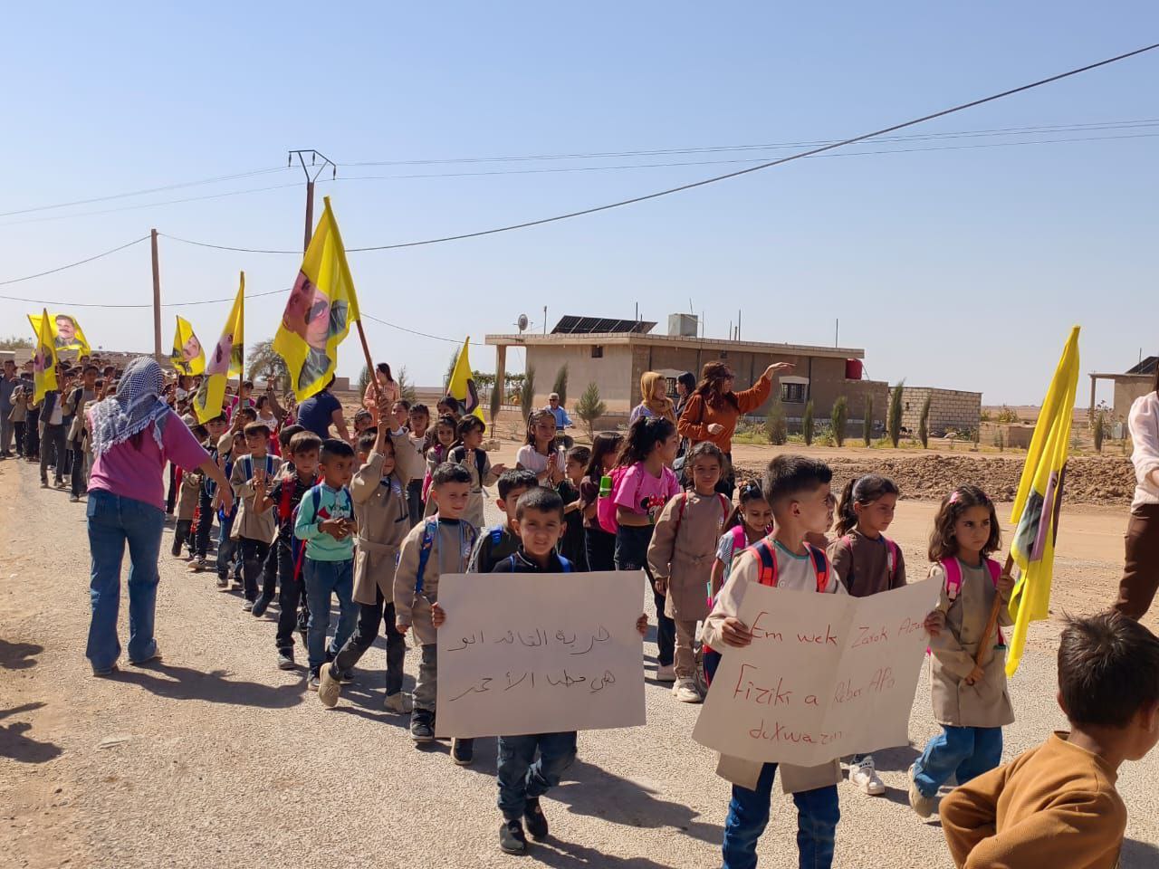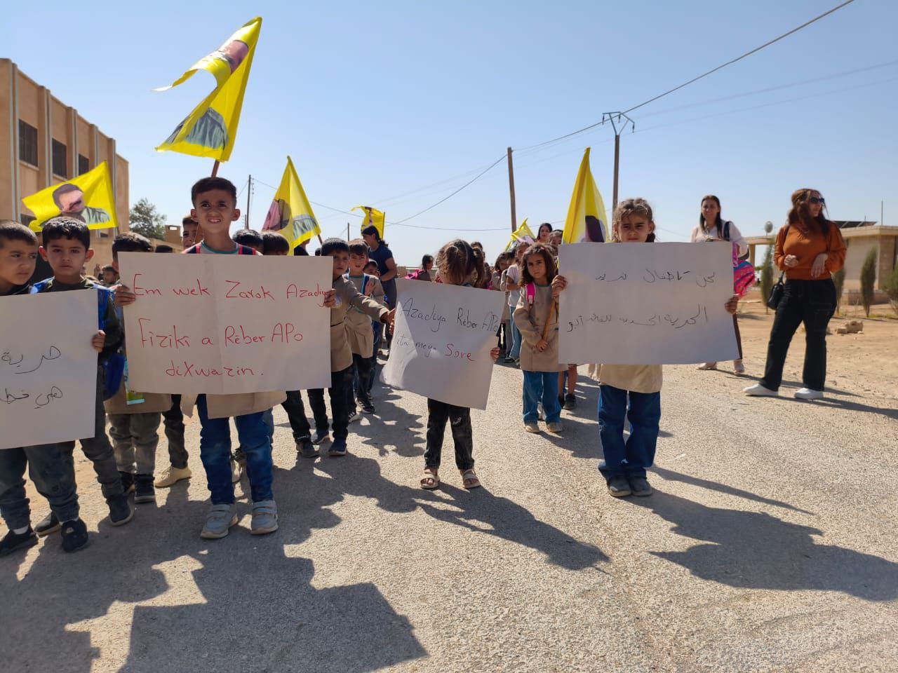 DIRBÊSIYÊ – Bi pêşengtiya Tevger Ciwanên Şoreşger ê Dirbêsiyê, meşekî zarokan ji bo daxwaza azadiya Rêber Apo hat li darxistin. Meş li navçeya Til Kermê ya girêdayî Dirbêsiyê pêk hat, bi beşdarbûna zêdetirî 100 zarokan.