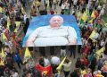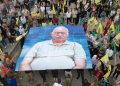 Endamên Tevgera Ciwanên Şoreşger jî pankartekî 25 parçe yê Rêber Apo hildan û pêşengtiya meşê kirin.