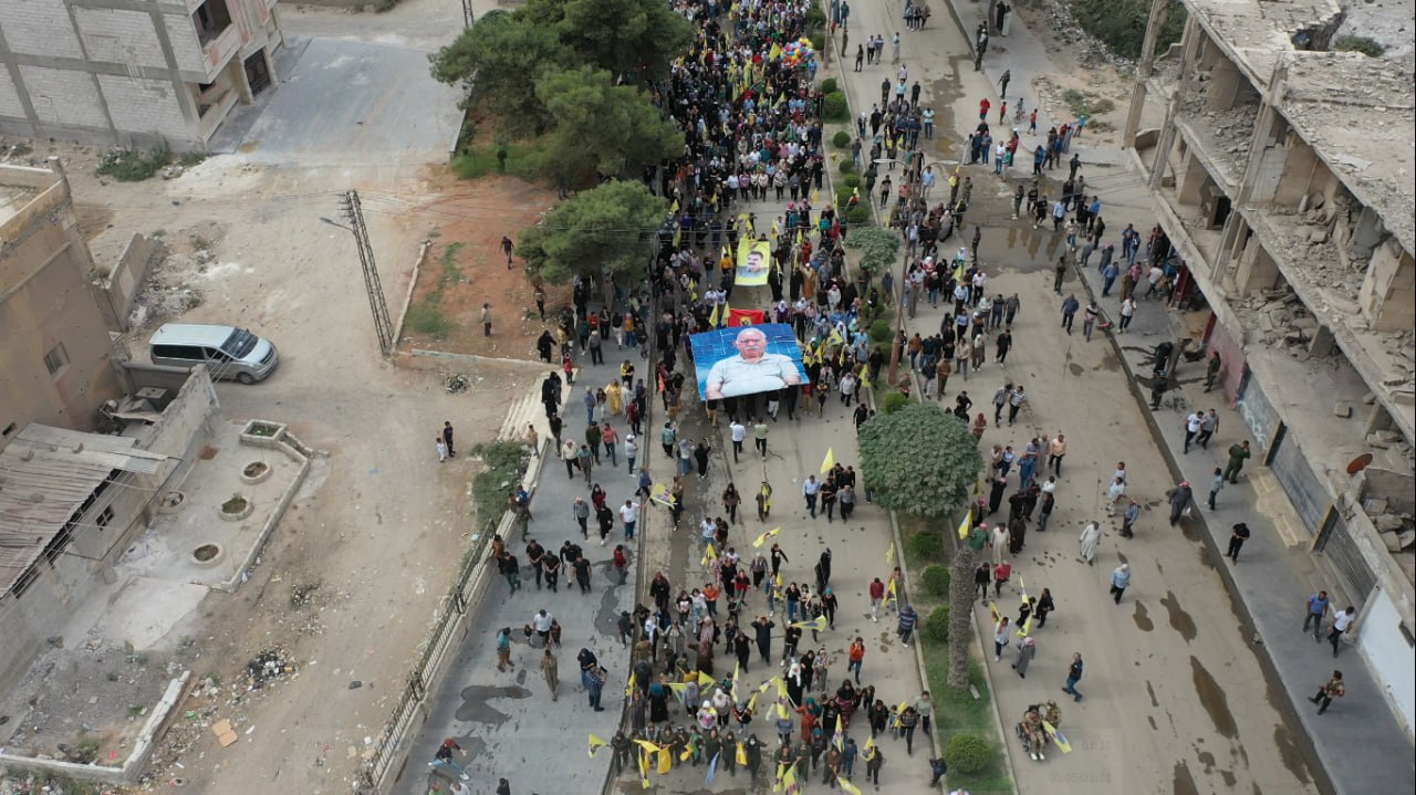 REQA – Li bajarê Reqayê bi hezaran şênî li dijî komploya 9’ê Cotmehê 1998’an li dijî Rêber Apo daketin qadan.