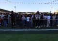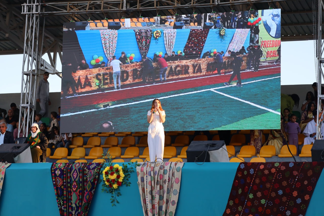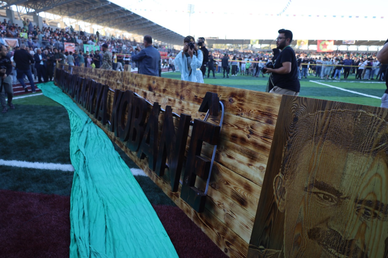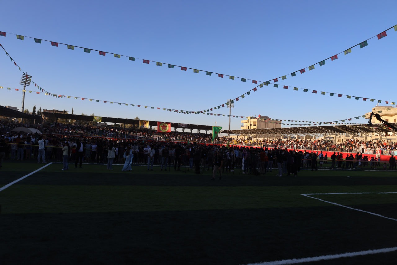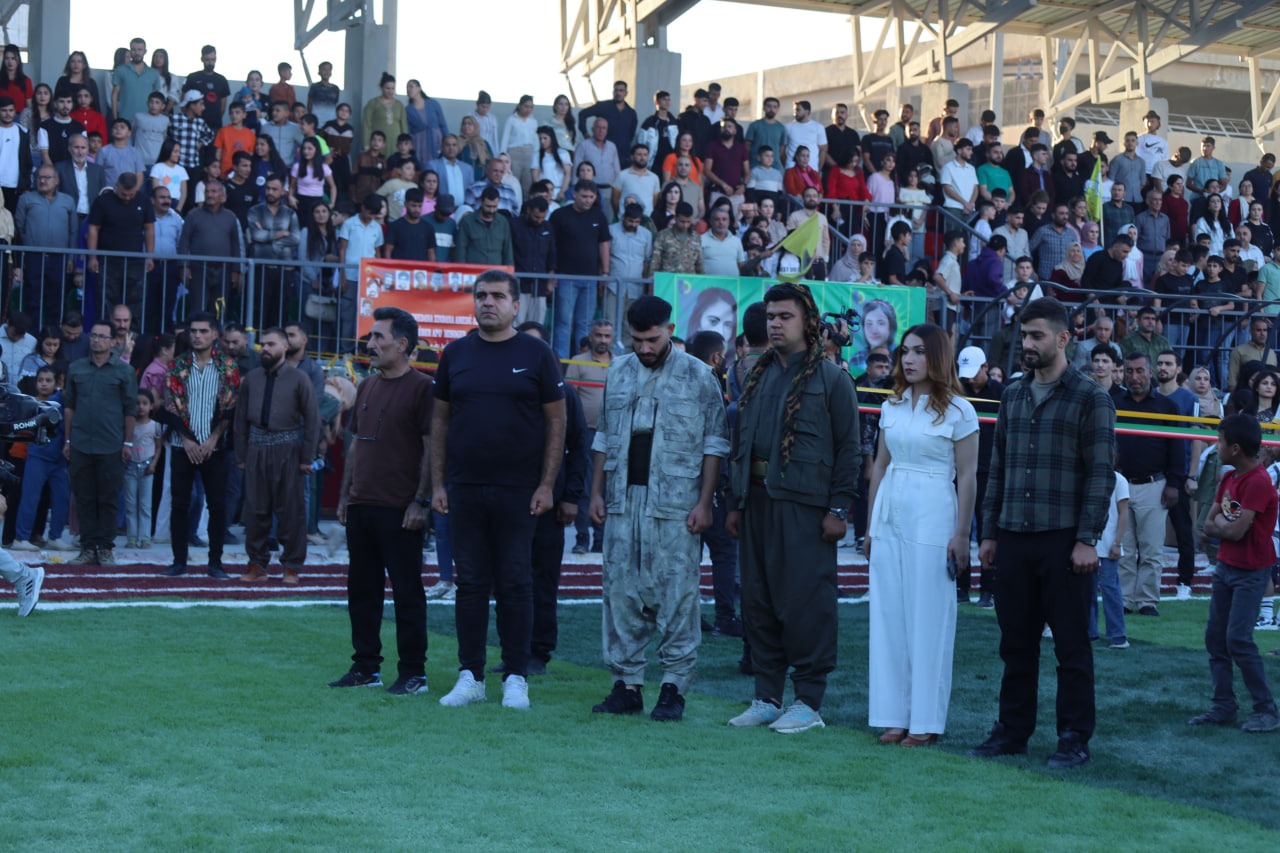Di serî de, stadyum ji aliyê dayîka şehîdan Îslim Derwîş ve û welatparêz Xelîl Ebdî yê ku kedekî mezin ji bo çêkirina stadyum da, hat vekirin.