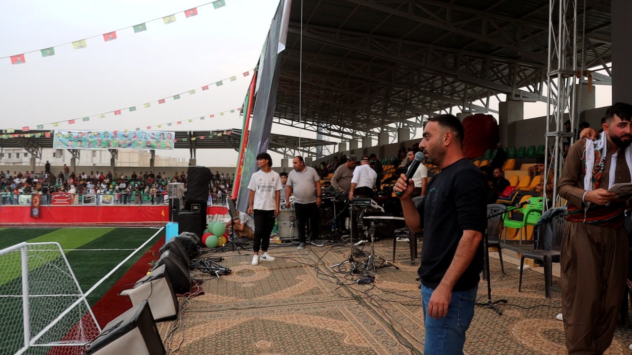 Berî wê, hevserokê Desteya Ciwan û Werzîşê ya Bakur û Rojhilatê Sûriyê Bozan Berkel axaftin kir. Bozan Berkel vekirina vê Stadyûm diyarî Rêber Apo û hemû şehîdên şoreşê, ku bi fedekariya xwe hiştin ku roja îro jiyanekî bi rûmet li herêmê were jiyîn. Piştî wê Bozan Berkel qala şehîd Bawer Agir û keda wê ji bo pêşxistina projeyê avakirina vê stadyûm kir.