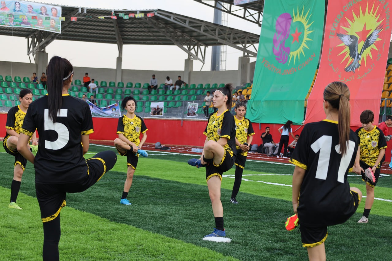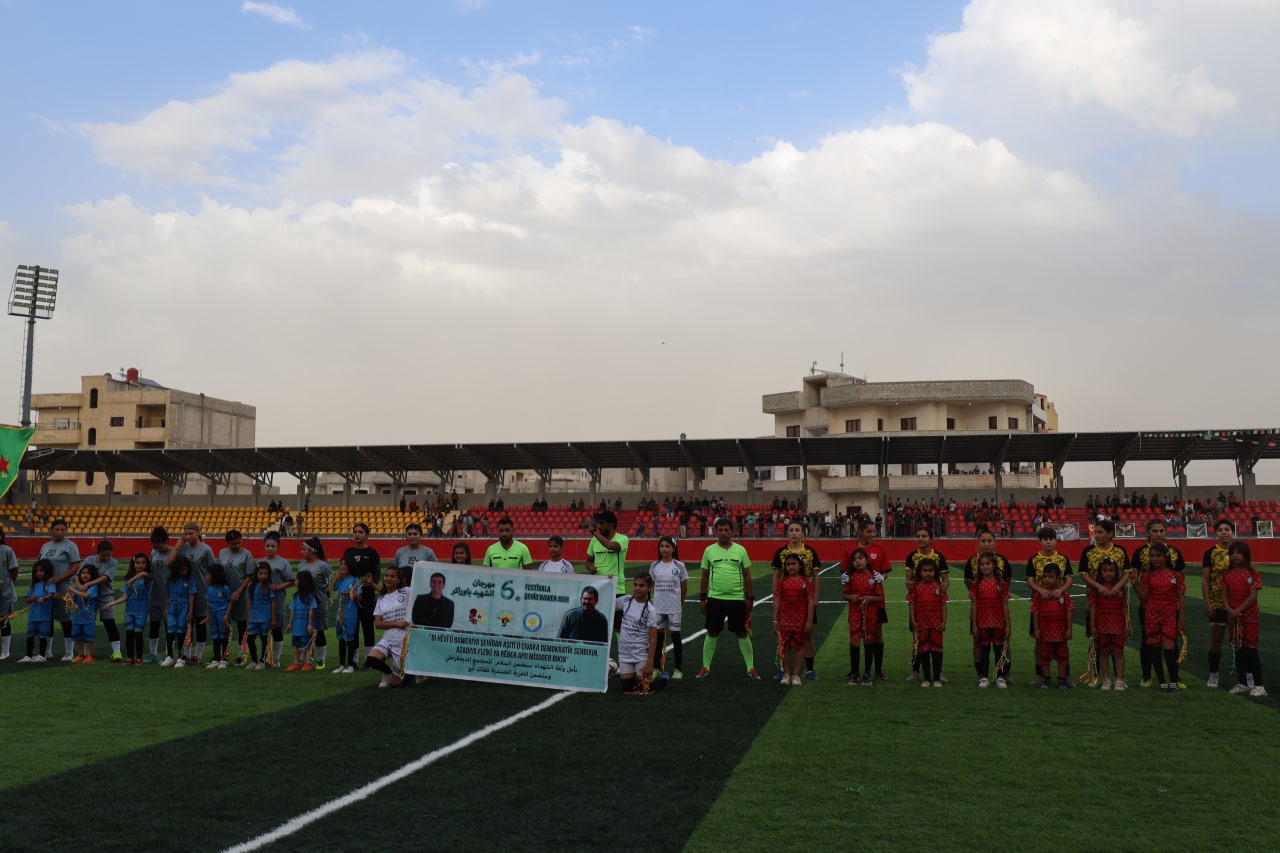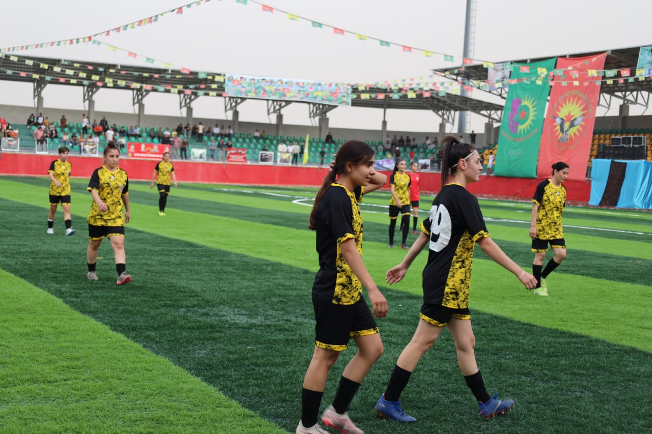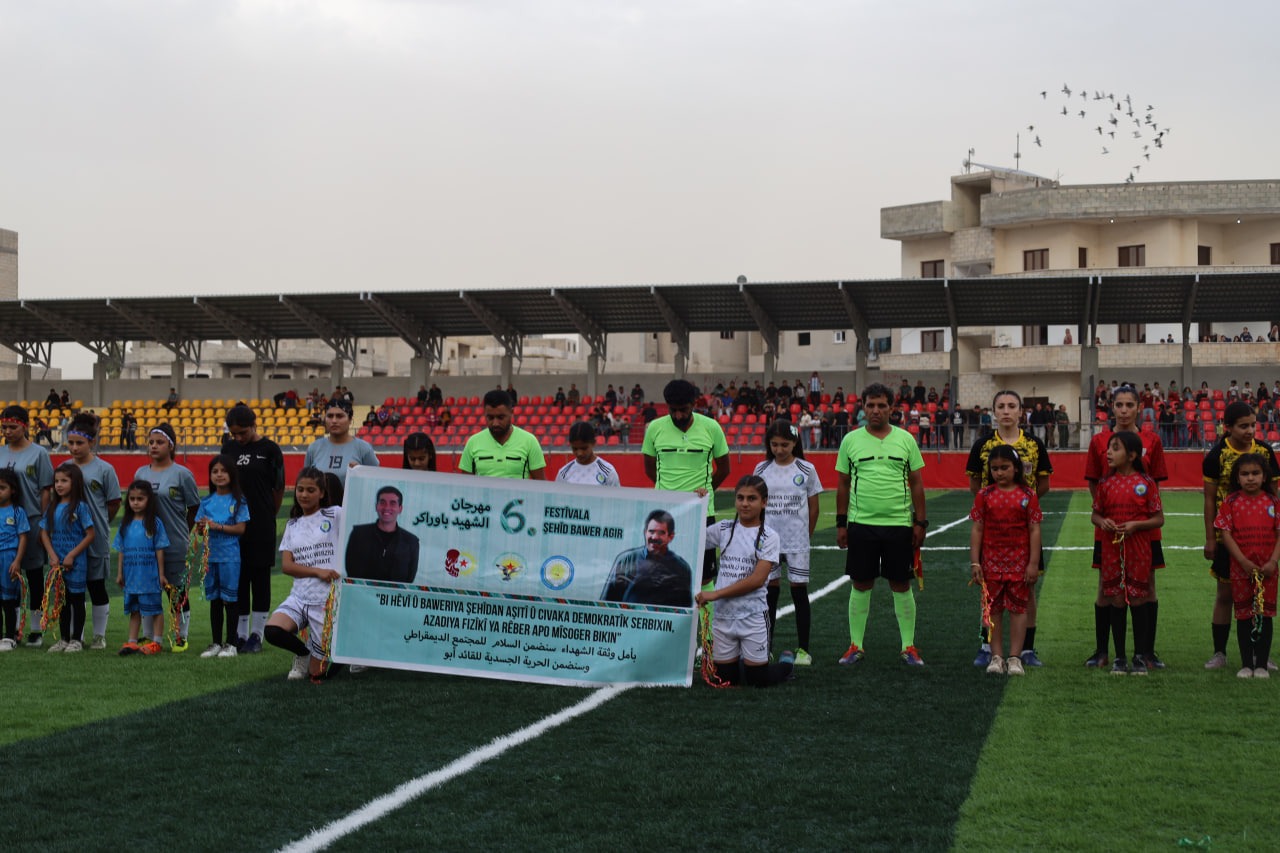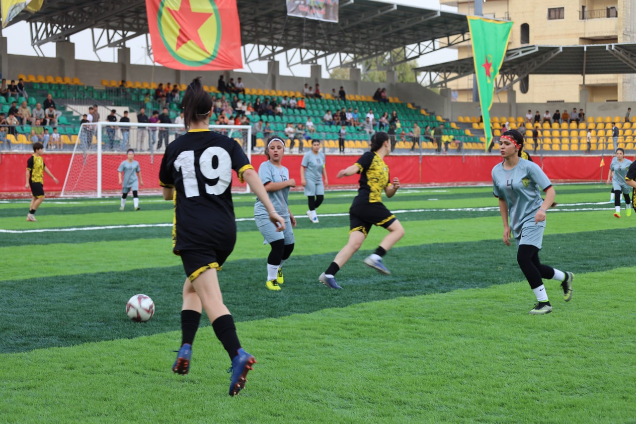 KOBANÊ – Di roja 2’emîn a 6’emîn Festîvala Şehîd Bawer Agir lîstokên yekemîn di Stadyûma Şehîd Bawer Agir de, di navbera tîmên Kobanê û tîmên Serdemê (ya Qamişlo) yên jin û yên xort hatin lîstin.