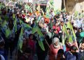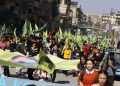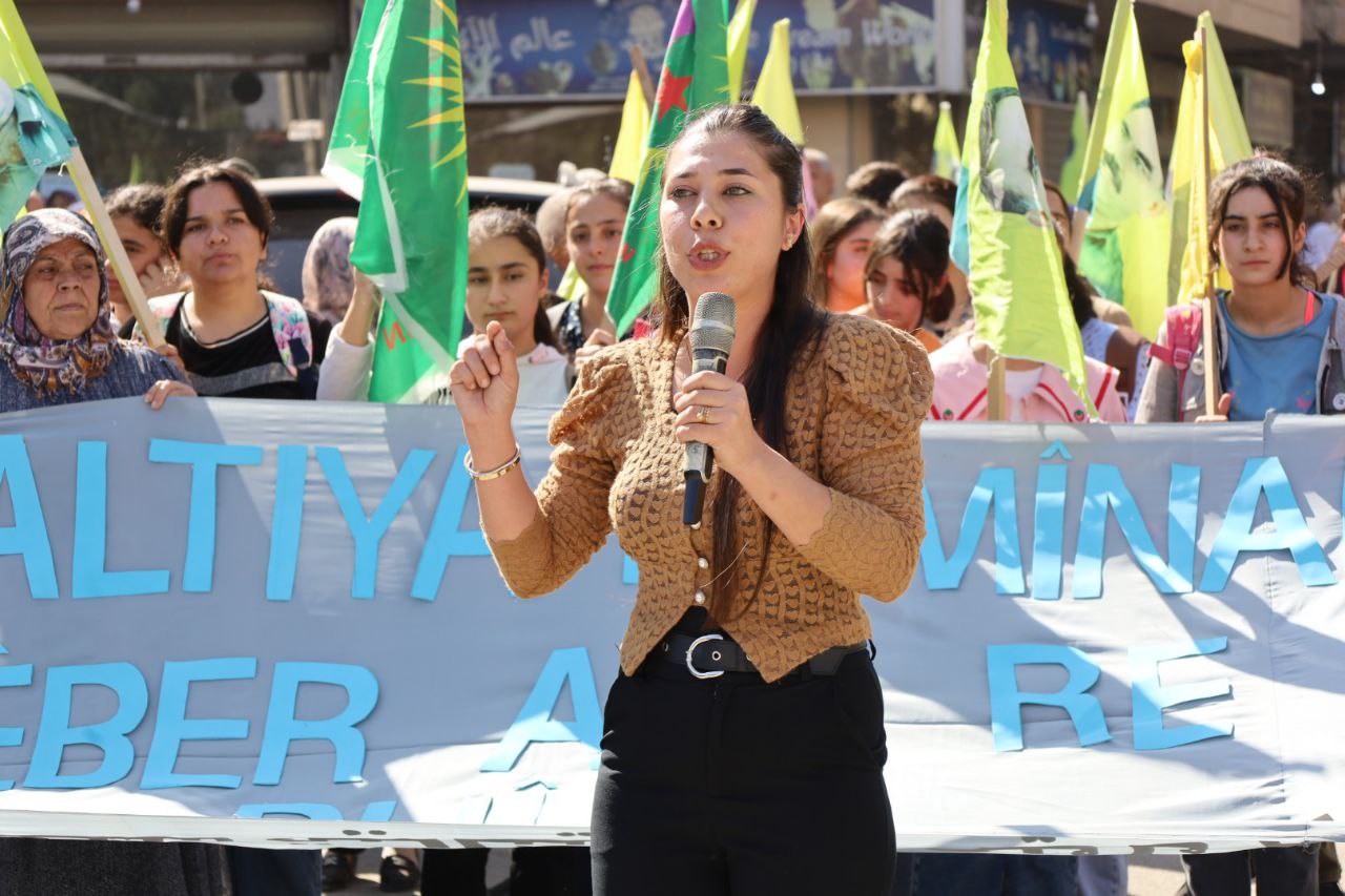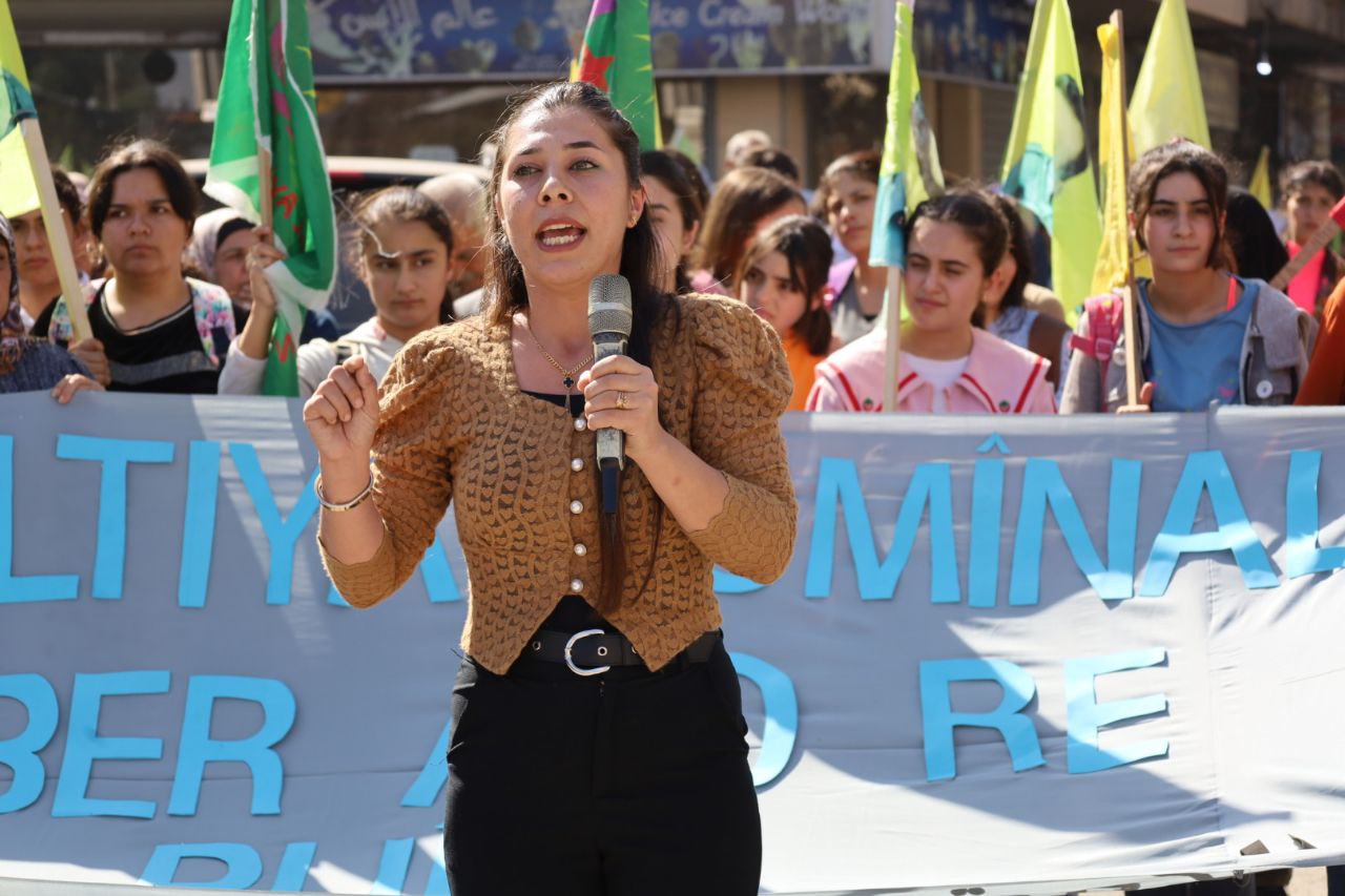 Meş bi dirûşmeya “Bi rêhevaltiya komînalist bi Rêber APO re bijîn” hate organîzekirin. Jinên ciwan û bi dehan ciwan tevlî meşê bûn û dirûşmeya “Bê Serok Jiyan Nabe” gotin.