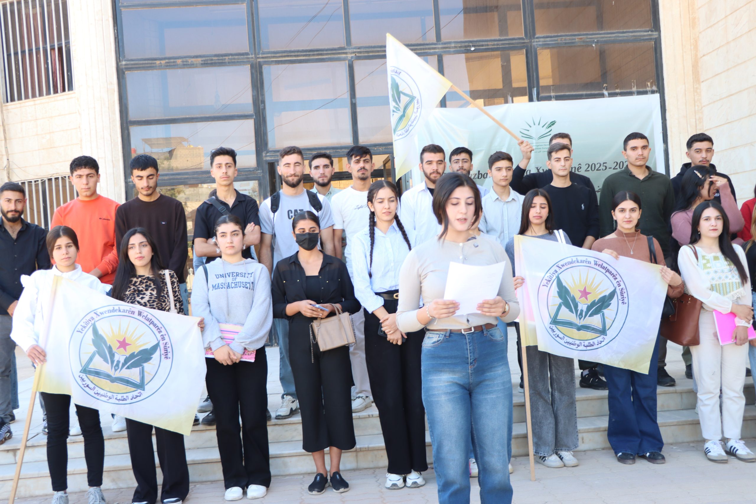 QAMIŞLO – Li Zanîngeha Rojava ya li Qamişlo xwendekarên bi daxuyanik qetilkirina Rojîn Kabaîş şermezar kirin.