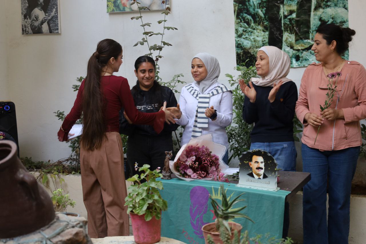 Di dawiyê de Nisrîn Muhammed girîngiya Xwerêvabirina civakek, bi taybetî bi meyzakirina perspektîfen Rêber APO re, dubare kir: “Navê min Nisrîn Muhammed e, û ez endame Komîteya tenduristiyê a Kongra Star me. Erka me ew e ku em hişmendiya di civakê de, bi taybetî di nav jinên ciwan de, bilind bikin. Ji ber vê me di organîzekirina perwerdehiya tenduristiyê de cihe xwe girt. Perwerde 15 rojan dom kir û dersên li ser mijarên wekî alîkariya yekem, dermanê xwezayî û zanîna tenduristiyê hatin dayin. Hem dersên pratîkî û hem jî yên teorîk hebûn. Armanca me gelemperî ew ku em ê asta zayîna civakê bilind bikin. Li vir li Helebê, li Taxa Eşrefiyeyê û Şexmesûd, em di rewşek awarte de dijîn. Di demên dawî de, êrîş li ser civaka me ya Taxa çêbûne. Ger êrîşên din çêbibin, civaka me dikare vê zanînê bikar bîne da ku alîkarî û parastina xwe bike. Di perspektîfen Rêber APO girîngiya rêxistinkirina civakê diyar dibe. Ji ber vê, dîtina jinên ciwan ên ku li vir xwe perwerde dikin bi rastî moralek mezin bû. Bi tevahî atmosfere di perwerde de germ û komûnal bû. Ji ber vê em ê bi xebata xwe bidomînin.”