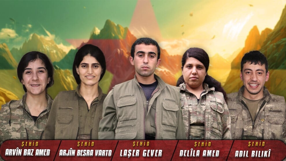 “Em hevrêyên xwe Laşer Gever, Arvîn Baz Amed, Arjîn Besra Varto, Delîla Amed û Adil Bilikî ên ku li herêma Metîna dema li ser peywirê xwe bûn di 30’yê Îlona 2024’an de di êrîşa artêşa Tirk de gihiştin şehadetê, bi hurmetî û minetdarî bibîr tînin.