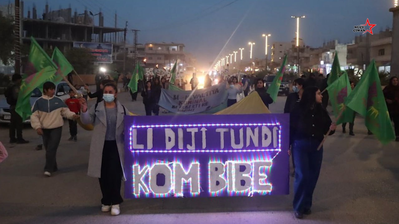 KOBANÊ – Yekîtiya Jinên Ciwan ên Kobanê bi boneya 25’ê Mijdarê Roja Têkoşîna Tundiya li Dijî Jînan a Navneteweyî de meşek girseyî li dar xist.