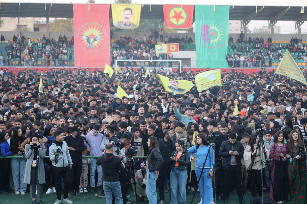 KOBANÊ – Bi boneya salvegera 47’emîn a Partiya Karkerên Kurdistan (PKK), roja berxwedana netewî, bi pêşengtiya Tevgera Ciwanên Şoreşger û Yekîtiya Jinên Ciwan, li Stadyûma Şehîd Bawer Agir a Kobanê şahiyekî girseyî hat li darxistin. Bi hezaran kes beşdarî şahiyê bûn.