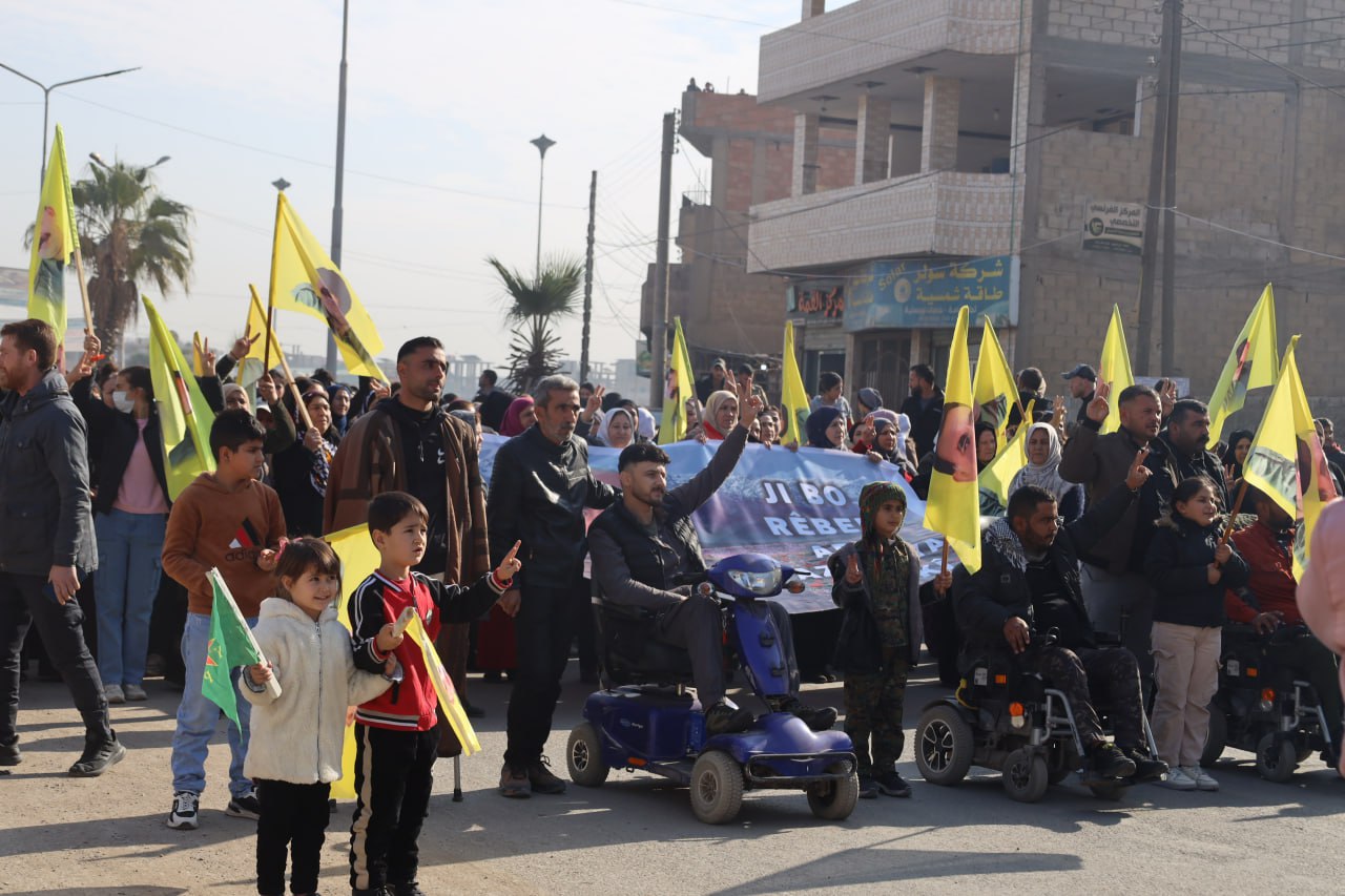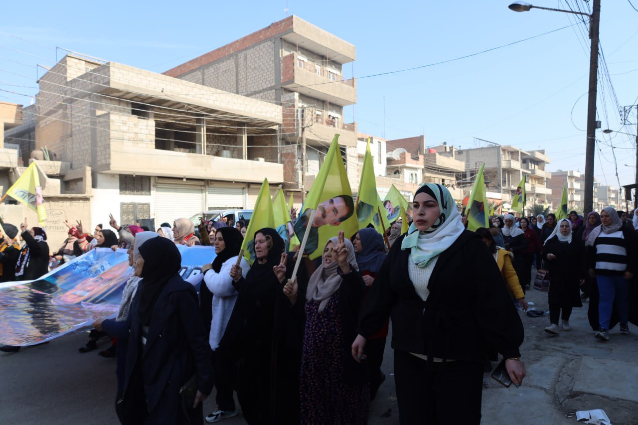 HESEKÊ – Li bajarê Hesekê, îro ji aliyê Însiyatîfa Gel ve meşek ji bo daxwaza azadiya fîzîkî ya Rêber Apo hat lidarxistin. Çalakî li xeta dîwar a navçeya Sînako dest pê kir û li Parka Rêber Apo bi dawî bû.