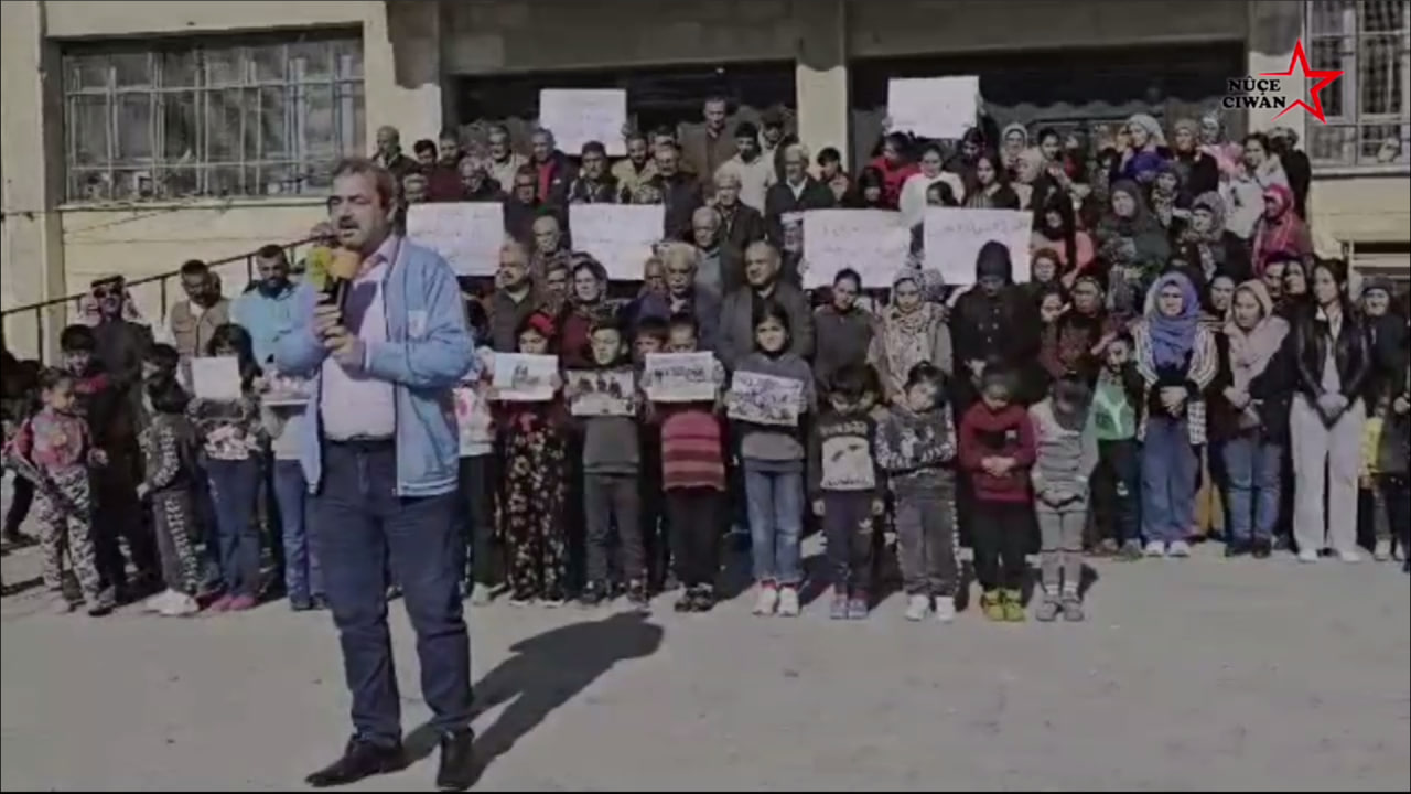 Daxuyanî ji hêla Cuma Kelo, endamê serokatiya Encûmena Navçeya Efrîn û Şahba, li ber Dibistana Omer Allûş a Reqayê hate xwendin.