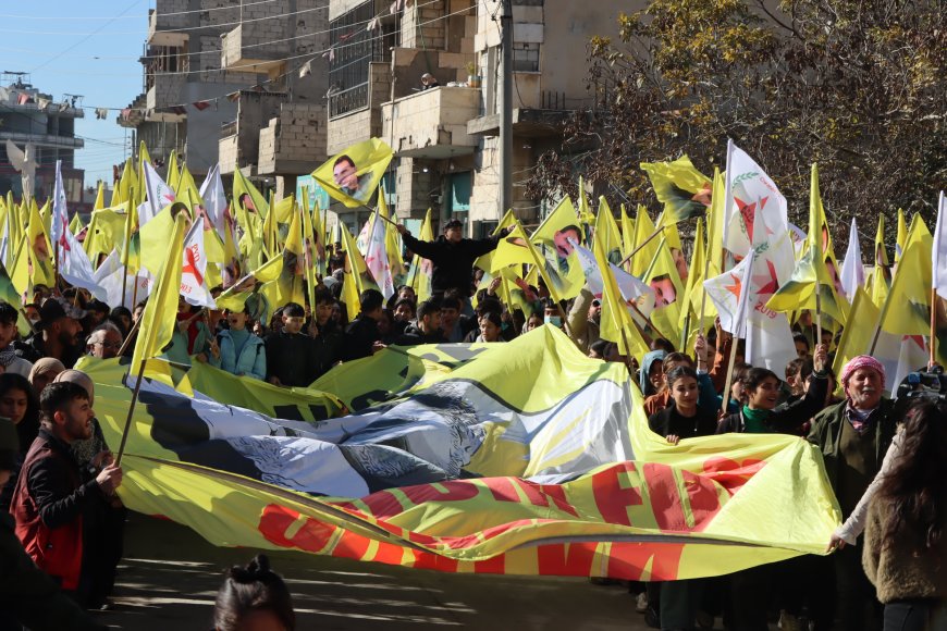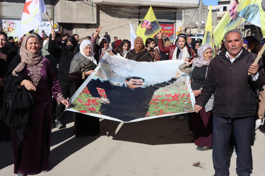 NAVENDA NÛÇEYAN – Bi sedan şêniyên kantona Firatê ji bo azadiya fîzîkî ya Rêber APO meşek bi dirûşma “Azadiya fîzîkî ya Rêber Apo destpêka pêvajoya aştî û civaka komînal e” li dar xist.