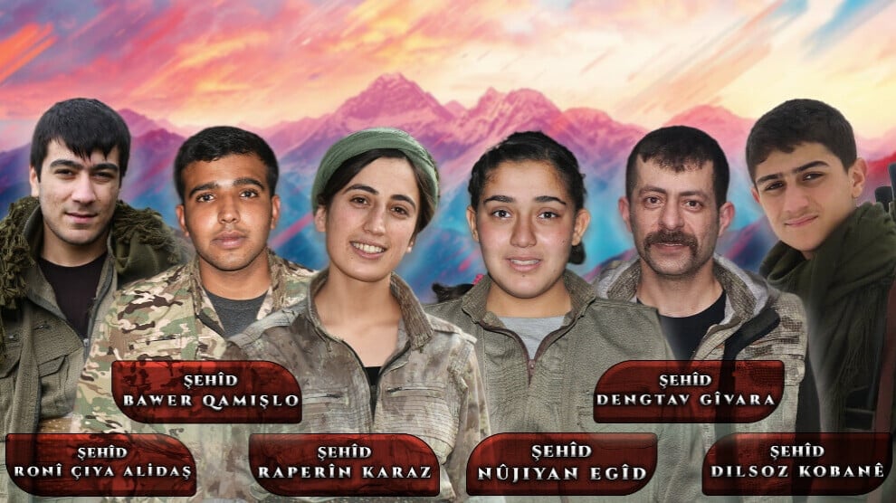 “Em hevrêyên xwe Dengtav Gîvara, Raperîn Karaz, Nûjiyan Egîd, Ronî Çiya Alidaş, Bawer Qamişlo û Dilsoz Kobanê yên ku di sala 2022’yan de li Zapê bi ruhê Apoyî yê fedaî li dijî êrîşên dagirkeriyê yên dewleta Tirk ên bi çekên kîmyewî, teqemeniyên qedexe û hemû taktîkên şer li ber xwe dan û rê li ber dagirkeriyê girtin û tevlî karwana şehîdan bûn, bi hezkirin, hurmet û minetdarî bibîr tînin.