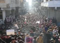 HELEB – Ji hezaran xwendekarên ji taxên Şêxmeqsûd û Eşrefiyê, Peymangeha Şehîd Zozan Yûsif û endamên Komîteya Perwerde û Fêrkirinê ya Civaka Demokratîk bi meşekê amabargoya ku hêzên hikumeta veguhêz li ser her du taxan ferz kiriye, meşek li dar xist.