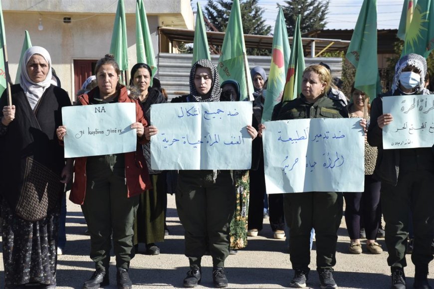 Di dawiya daxuyaniyê de dirûşmên “Jin jiyan e, jiyanê nekujin” û “Na ji qetilkirina jinan re” hatin berzkirin.