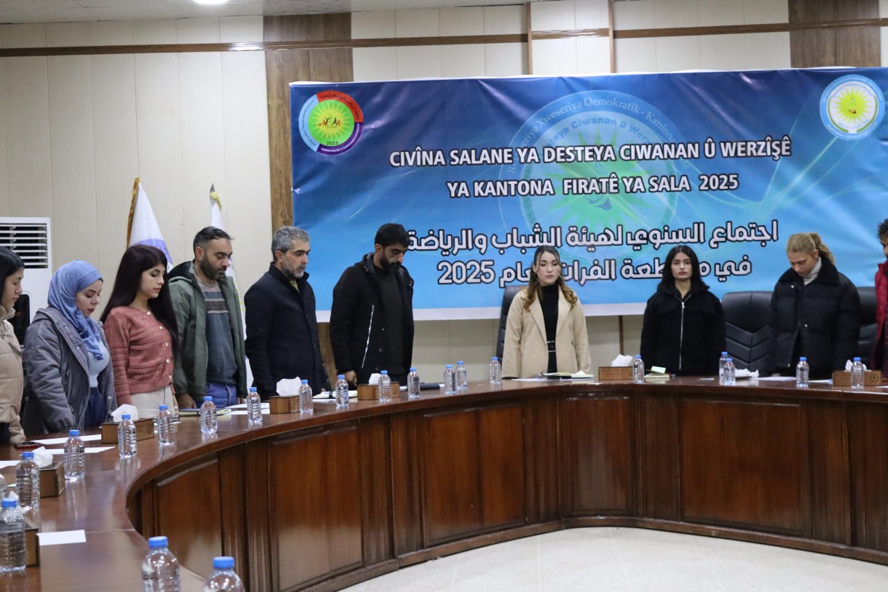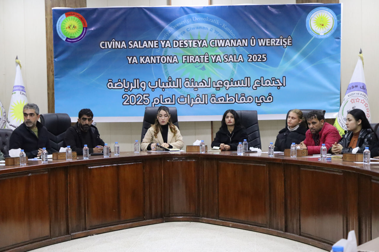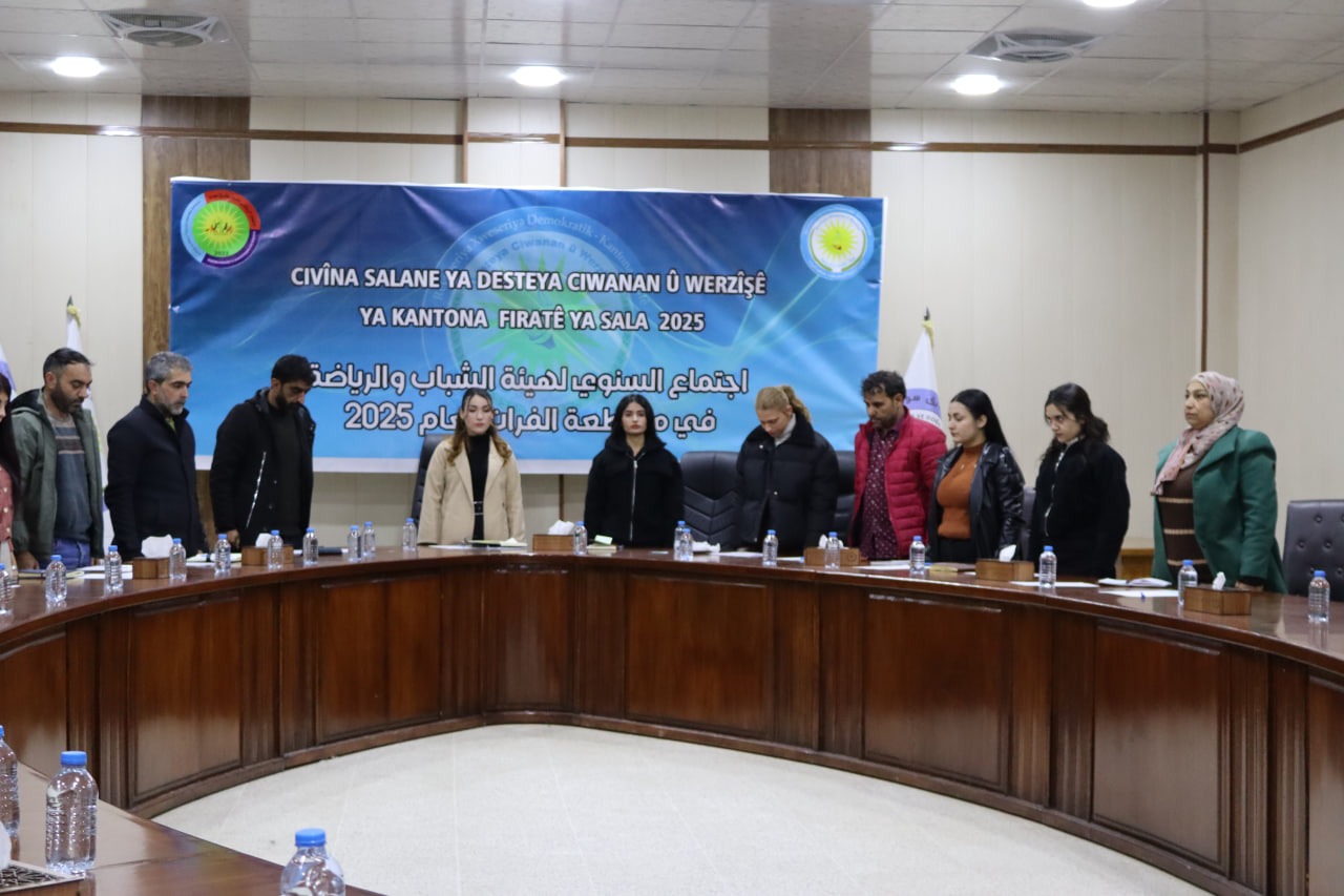 KOBANÊ – Desteya Ciwan û Werzîşê ya Kantona Firatê civîna xwe ya salane ya sala 2025 li darxist. Endamên Deste, nûnerên tevgerên ciwanan û Rêveberiya Xweseriya Demokratîk a Bakûr û Rojhilatê Sûriyê amade bûn. Civîn li salona Encûmena Rêveberiya Xweser pêk hat.