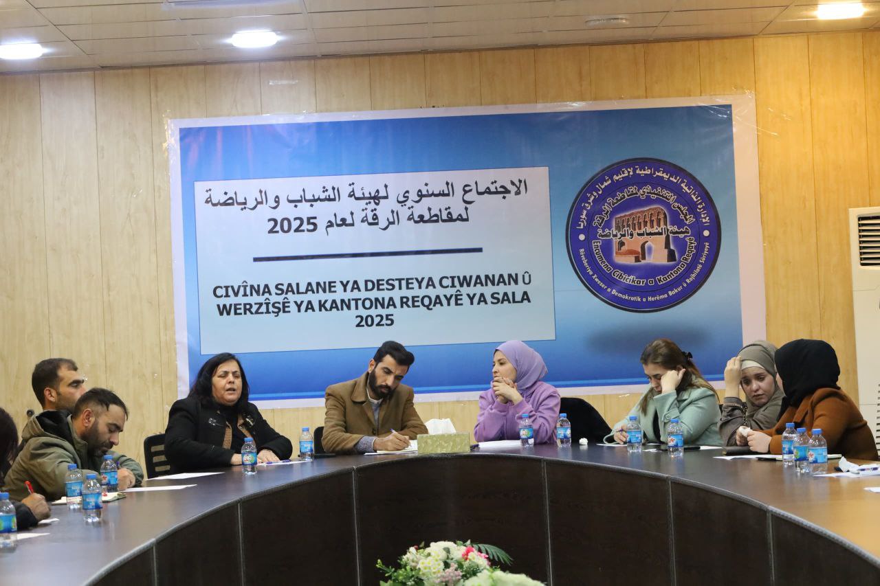 REQA – Desteya Ciwan û Werzîşê ya Kantona Reqqayê civîna xwe ya salane ya 2025’an li Hola Meclîsa Rêveber a Kantona Reqqayê lidar xist. Hevserokatiya Meclîsa Rêveber, Cîgirên Serokatiyê, Hevserokatiya Desteya Ciwan û Werzîşê û Federasyona Werzîşê ya Bakur û Rojhilatê Sûriyeyê, û her wiha endamên Meclîsa Werzîşê û hemû ofîsên Desteyê beşdarî civînê bûn.