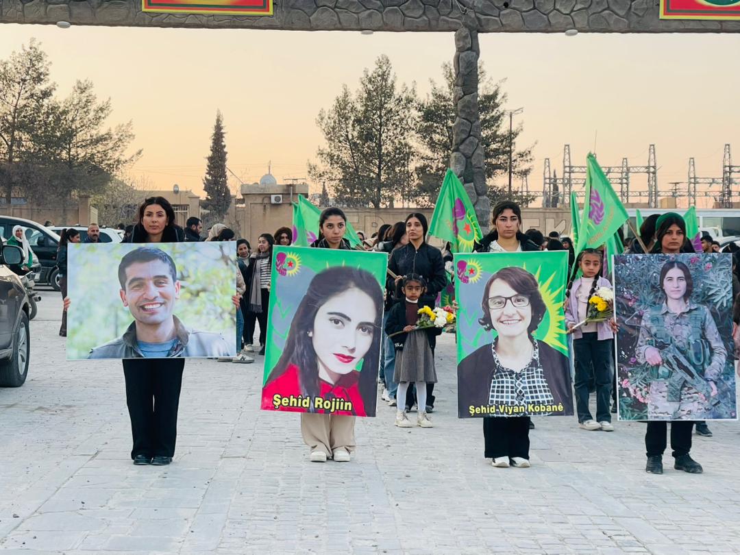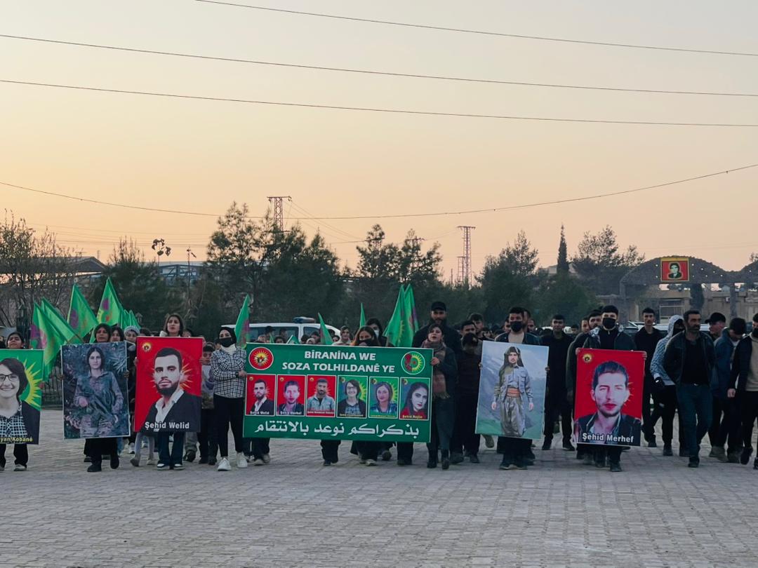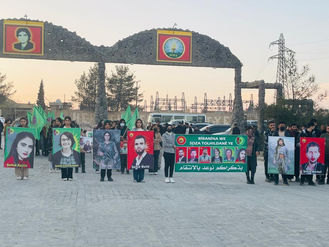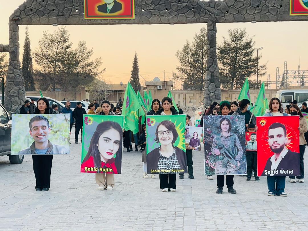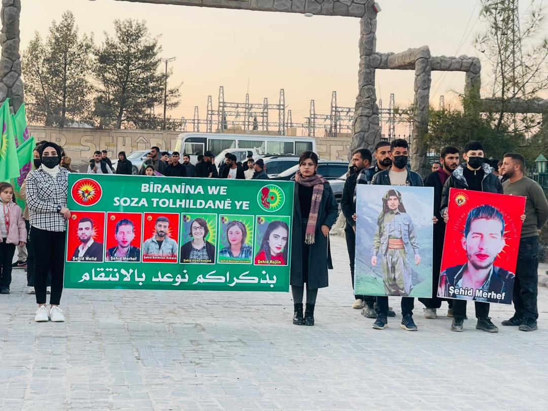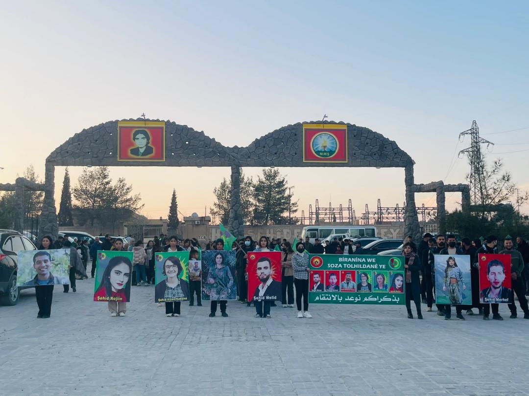 KOBANÊ – Tevgera Ciwanên Şoreşger û Yekîtiya Jinên Ciwan, bi boneya salvegera 6 şehîdên tevgera Ciwanan Viyan Kobanê, Nûjiyan Ocalan, Rojîn Îsa, Behdînan Kobanê, Welîd Mihemed û Merhef Îbrahîm, ku di 25’ê Berfanbarê 2021 de di êrîşekî dewleta Tirk li ser akademiya ciwanan şehîd bûn û her wiha, salvegera şehadeta Ronahî Yekta li şerê Bendava Tişrînê û şehadeta Azad Mihemed di konvoya gel ji bo nobetê li Bendava Tişrînê, merasîmekî li Goristana Şehîd Dicle lidarxistin.