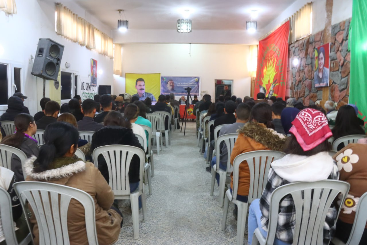Civîn bi pêşwaziya beşdaran dest pê kir, piştre civîn bi deqeyek rêzgirtin ji bo bîranîna şehîdan hate girtin. Piştre ji hêla Fermandarê Hêzên Rizgariya Efrîn Şerzan Efrîn nirxandin li ser rewşa siyasî hate kirin, piştre perspektîfên Rêber APO ji hêla endama ciwanan Ayaz Ehmed ve hat xwendin.