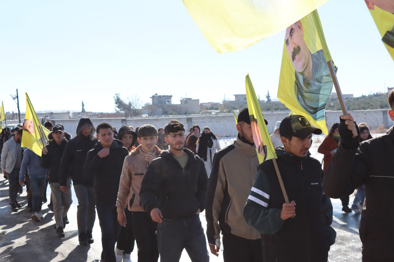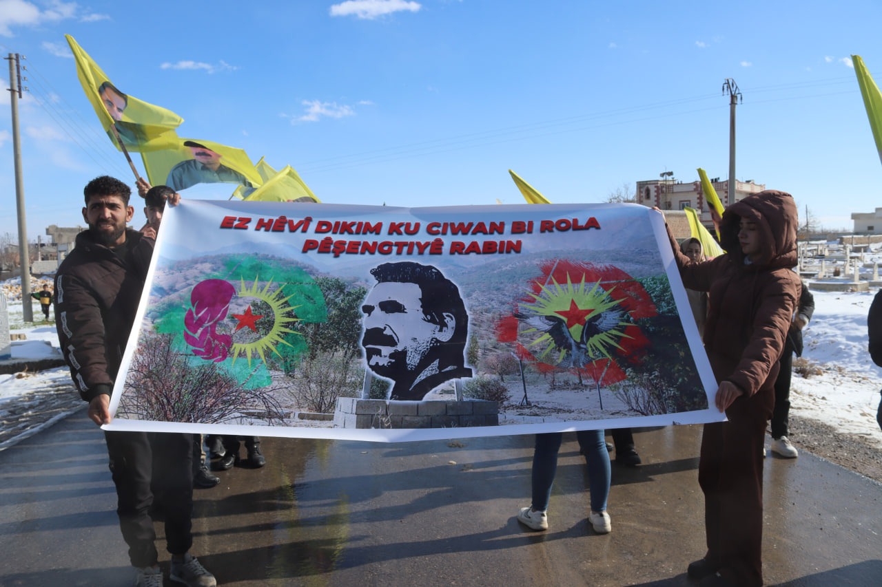 Bi dehan erebeyan li Qada Jina Azad kom bûn, û bi alên Rêber Apo û dirûşmeyan berê xwe dan gundê Elpelûrê. Ciwanan ji destpêka gund heya mala Rêber Apo meşiyan û sloganan berz kirin.