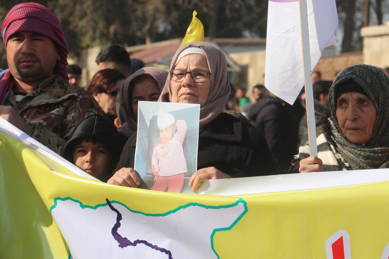 Xwepêşandan li ber kampa koçberên Efrîn dest pê kir, li wir beşdaran al û pankartên ku êrîşên li ser deverên niştecihbûnê şermezar dikirin û pabendbûna xwe ya bi mafê jiyana ewle ya sivîlan re piştrast dikirin, bilind kirin. Xwepêşandan ber bi Meclîsa Malbatên Şehîdan ve çû, di nav dirûşmeyên ku daxwaza rawestandina êrîşan û parastina sivîlan dikirin.