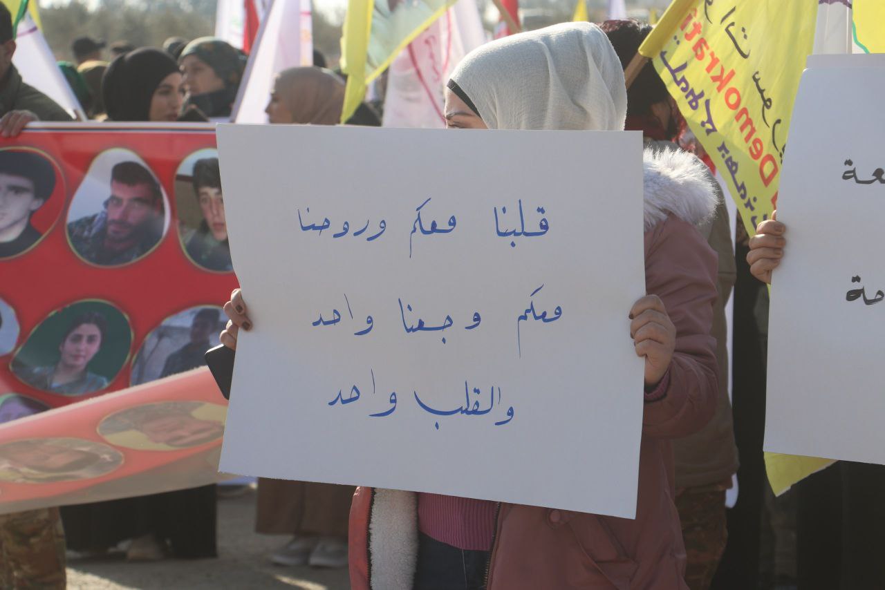 TEBQA – Îro sibê, Kantona Tebqayê xwepêşandanek mezin a giştî dît ku bi sedan niştecihên Kantona Tebqa û Efrîn, li gel tevgerên ciwanan û saziyên sivîl û leşkerî beşdar bûn. Di xwepêşandanê de hevgirtina bi niştecihên taxên Eşrefiyê û Şêx Meqsûd re hate nîşandan û hedefgirtina sivîlan hate şermezarkirin.