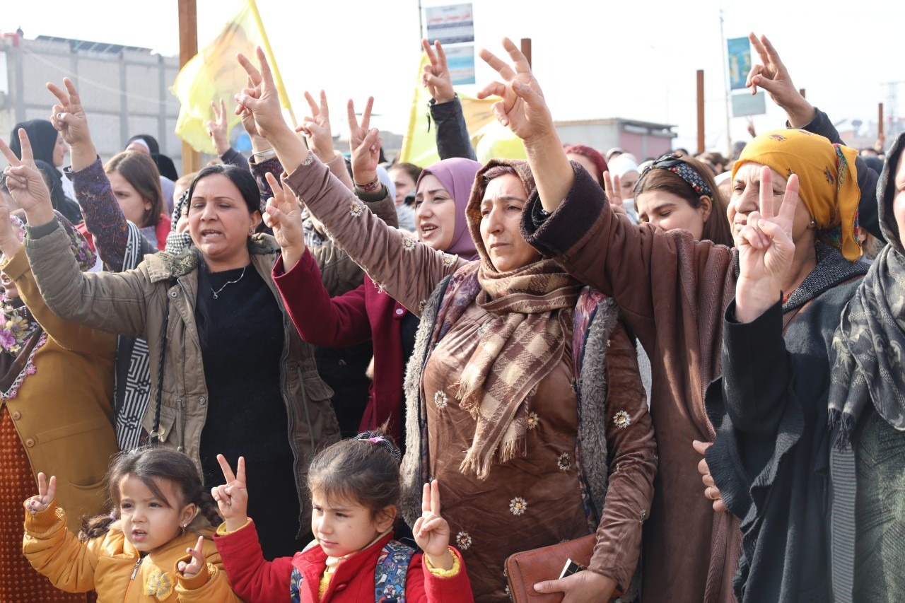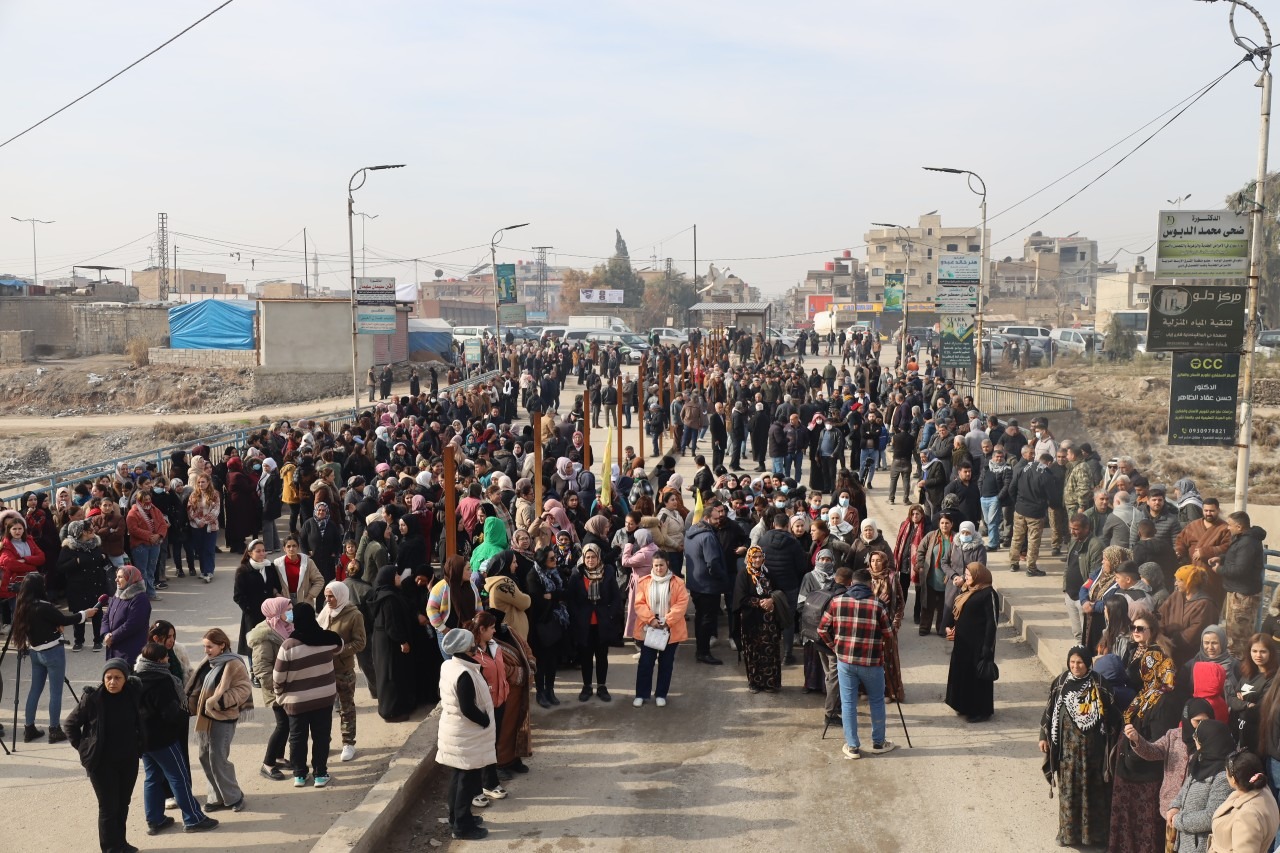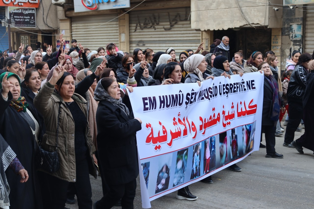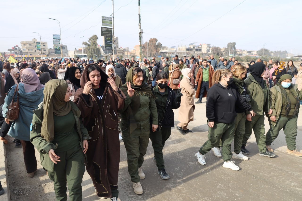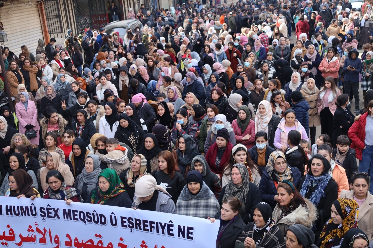 HESEKÊ – Îro, li bajarê Hesekê, bi pêşengiya Meclîsa Efrîn û Meclîsa Hesekê, meşek girseyî li dijî êrîşên li ser Helebê hat lidarxistin. Bi sedan kes beşdarî meşê bûn û peyamên piştgiriyê ji gelê Helebê re şandin.